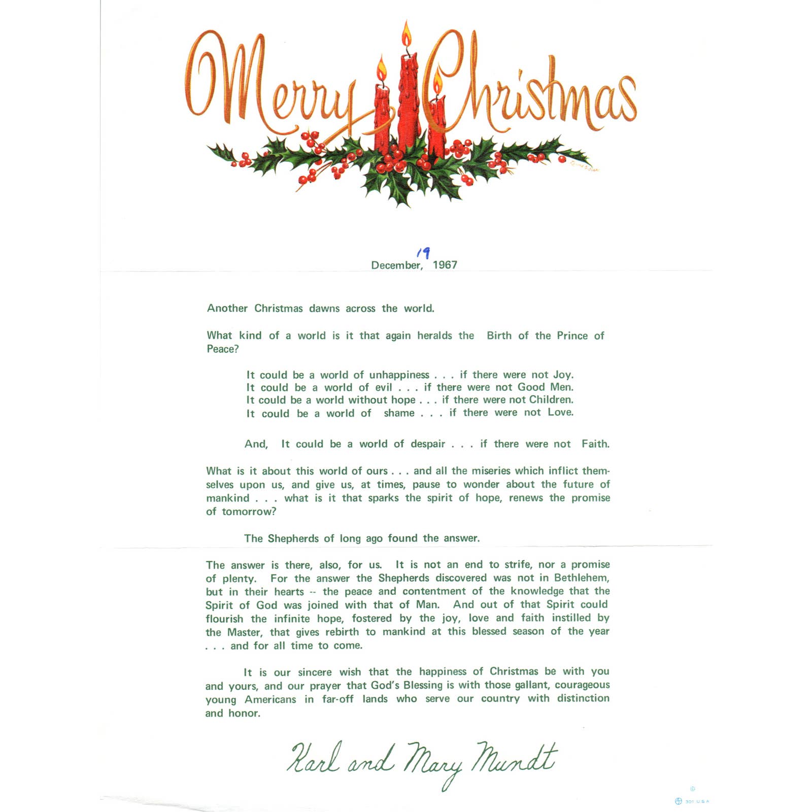 1967 Christmas Letter from Senator Karl Mundt and Wife Mary TK1-P6