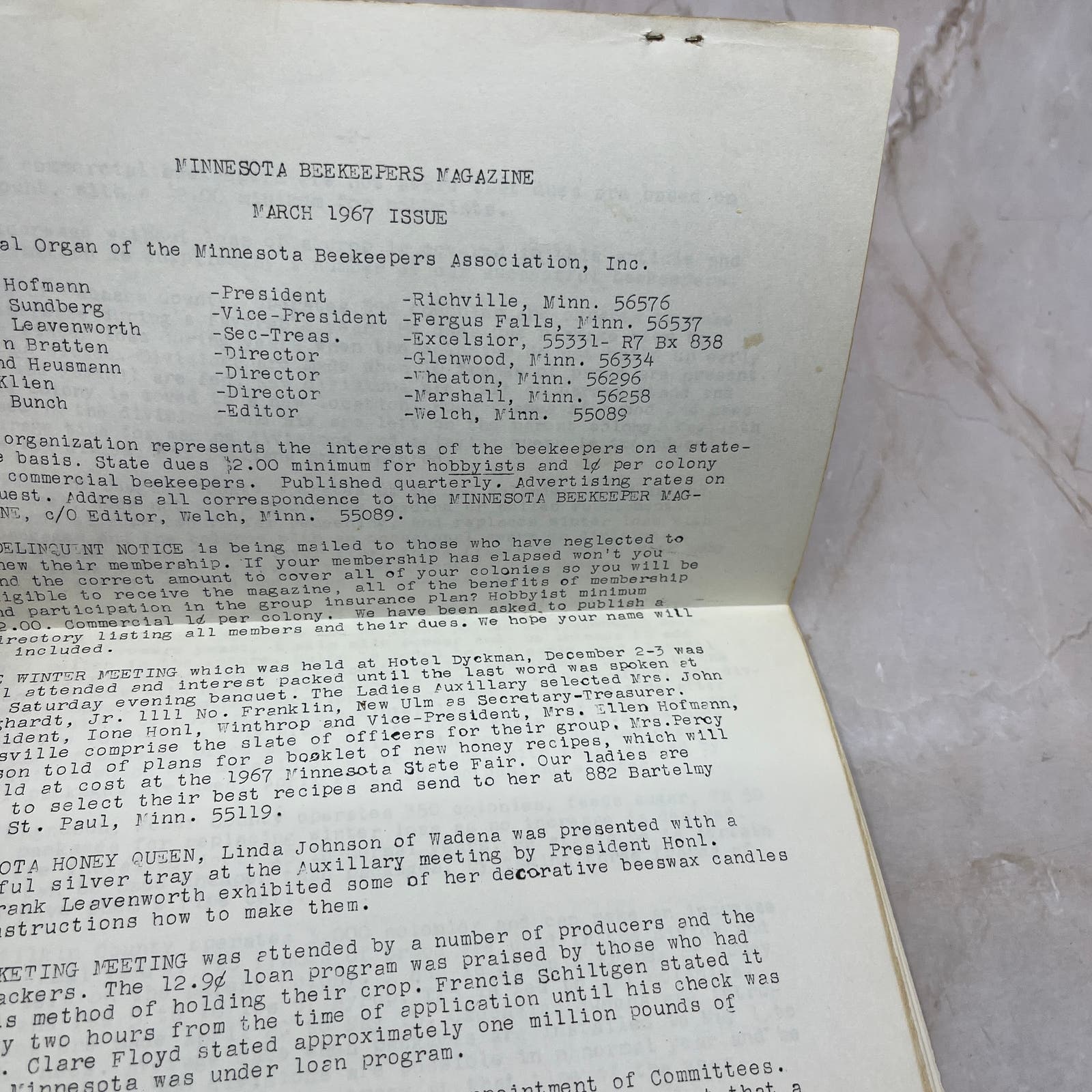 1967 Mar The Minnesota Beekeeper Magazine Red Wing MN Beekeepers Association TD5