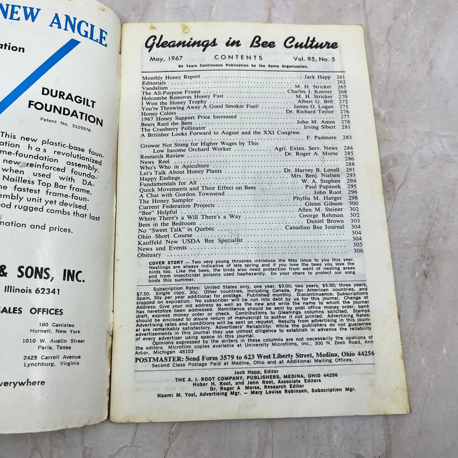 1967 May Gleanings in Bee Culture Magazine Bees Beekeeping Honey TD7