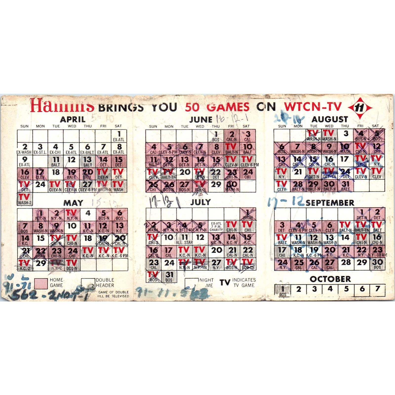 1967 Minnesota Twins Baseball Hamms Pocket TV Schedule TK1-P3