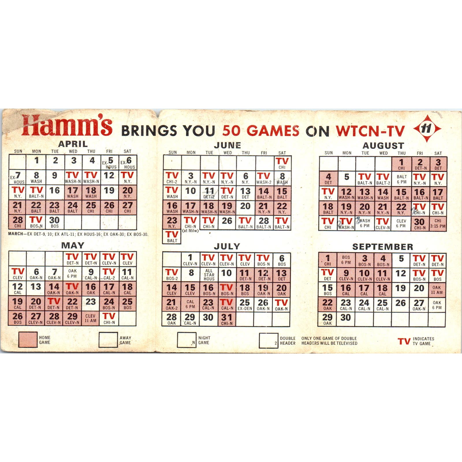 1968 Minnesota Twins Baseball Bear Hamms Pocket TV Schedule SB3
