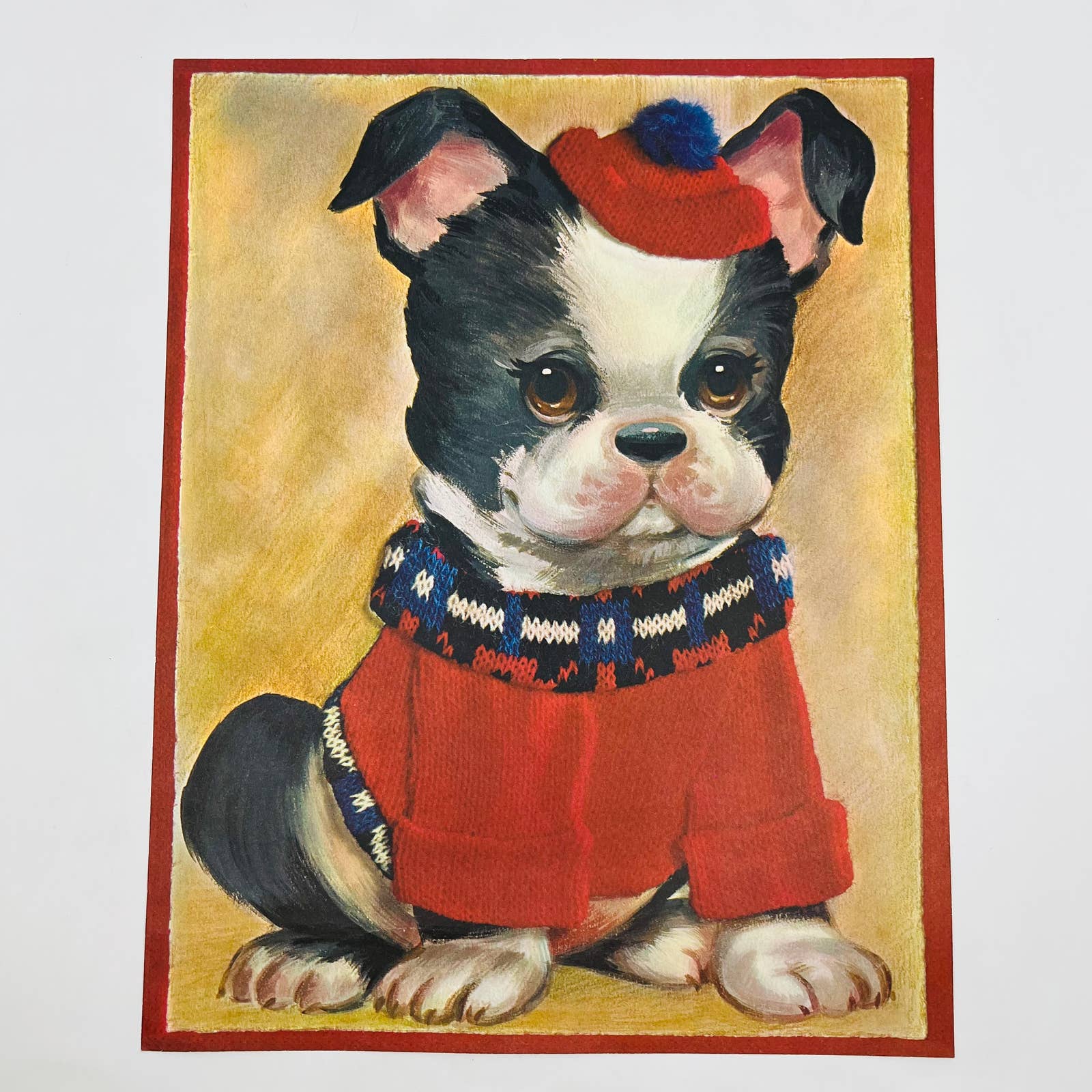 1968 Original Kitsch Boston Terrier Puppy Dog Print COLONIAL STUDIOS 11x14 FL2