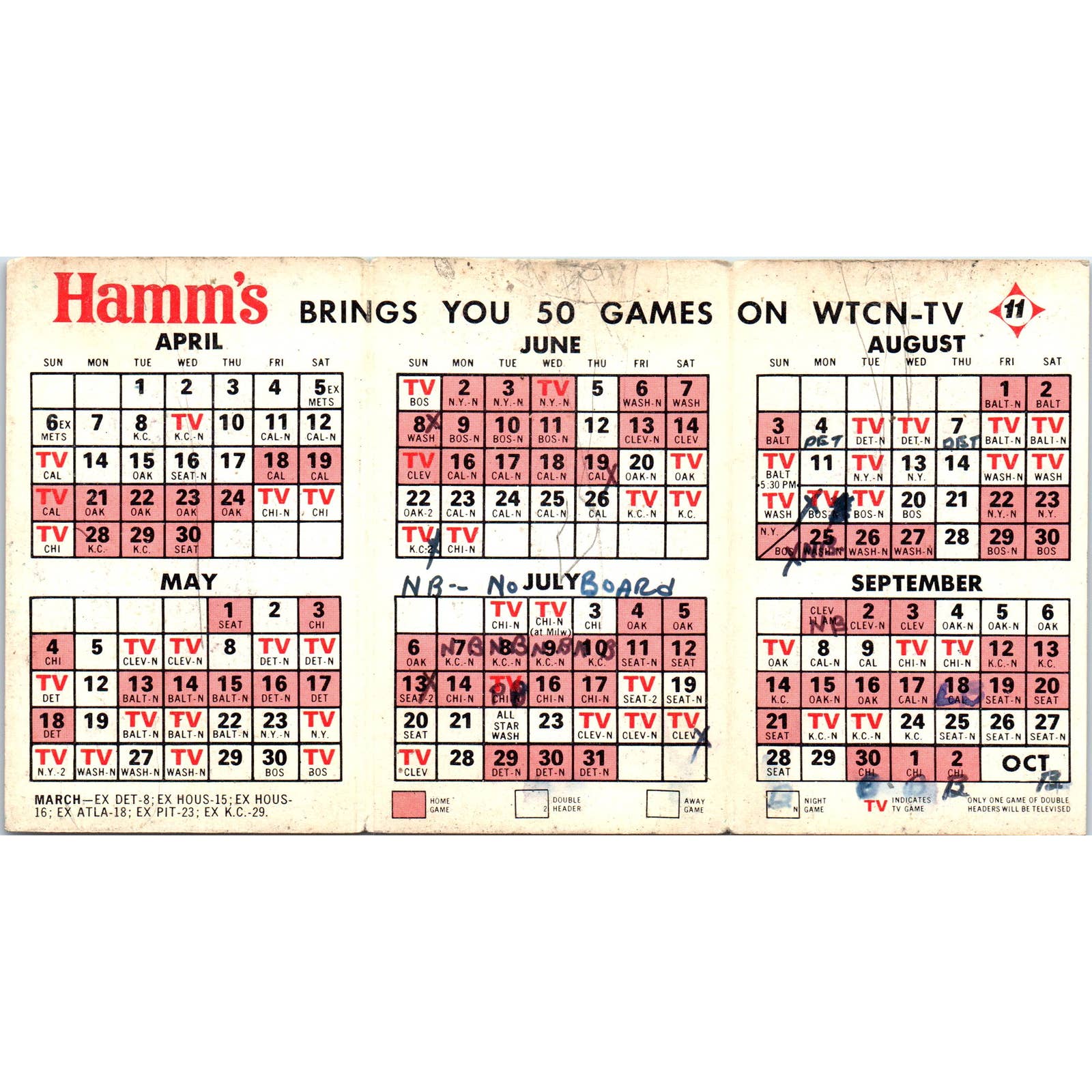 1969 Minnesota Twins Baseball Bear Hamms Pocket TV Schedule TK1-P3