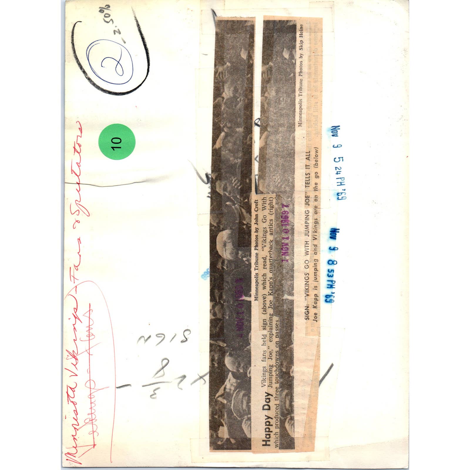 1969 Original Press Photo Football NFL Minnesota Vikings Fans Go With Jumping Joe Kapp 7x9" TK2-FP