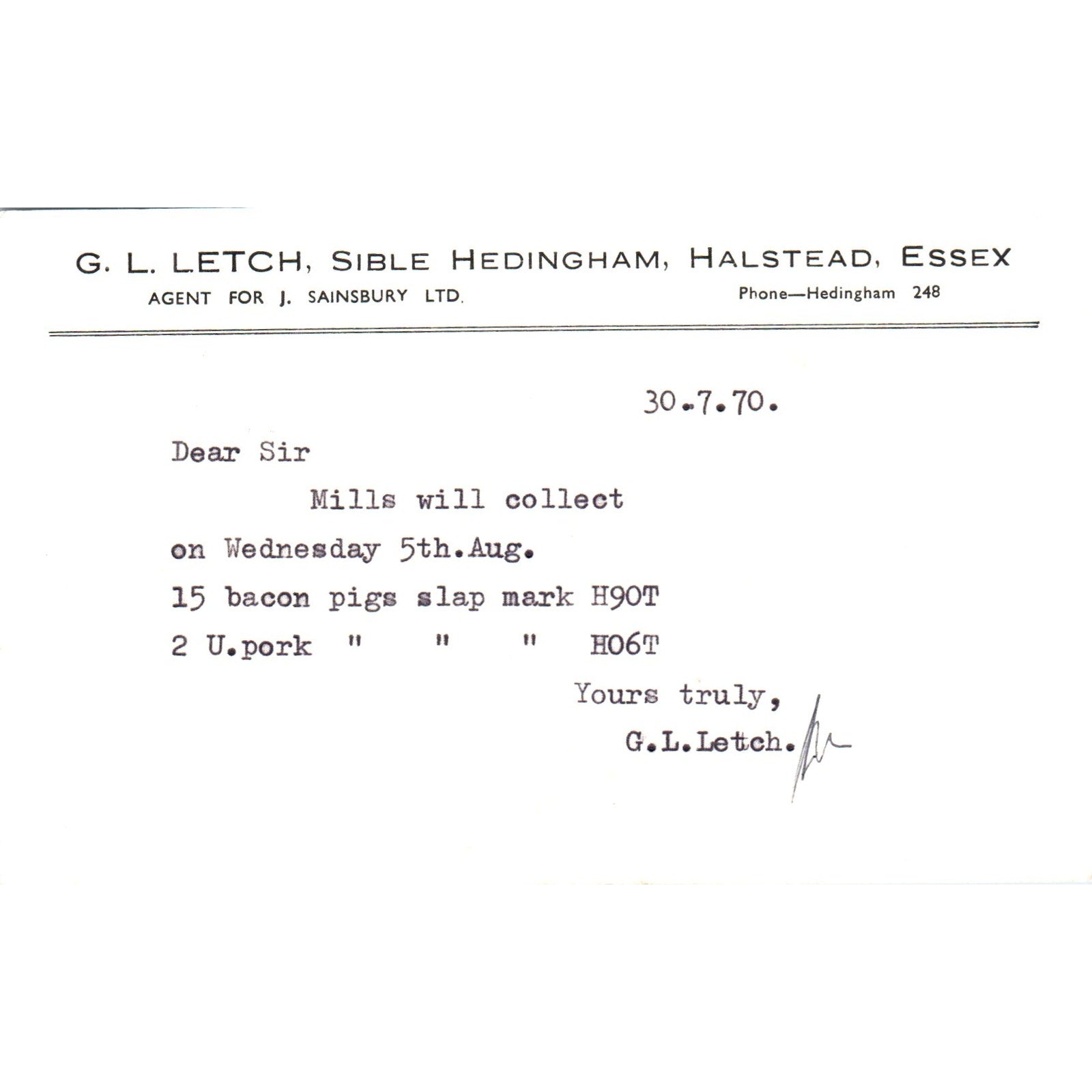 1970 G.L. Letch Sible Hedingham Halstead Essex Postal Mailing Card PE6