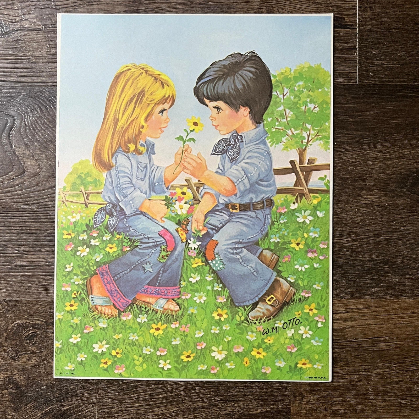1970s Boy and Girl in Love - W.M. Otto Kitsch Lithograph Art Print 9x12 V8