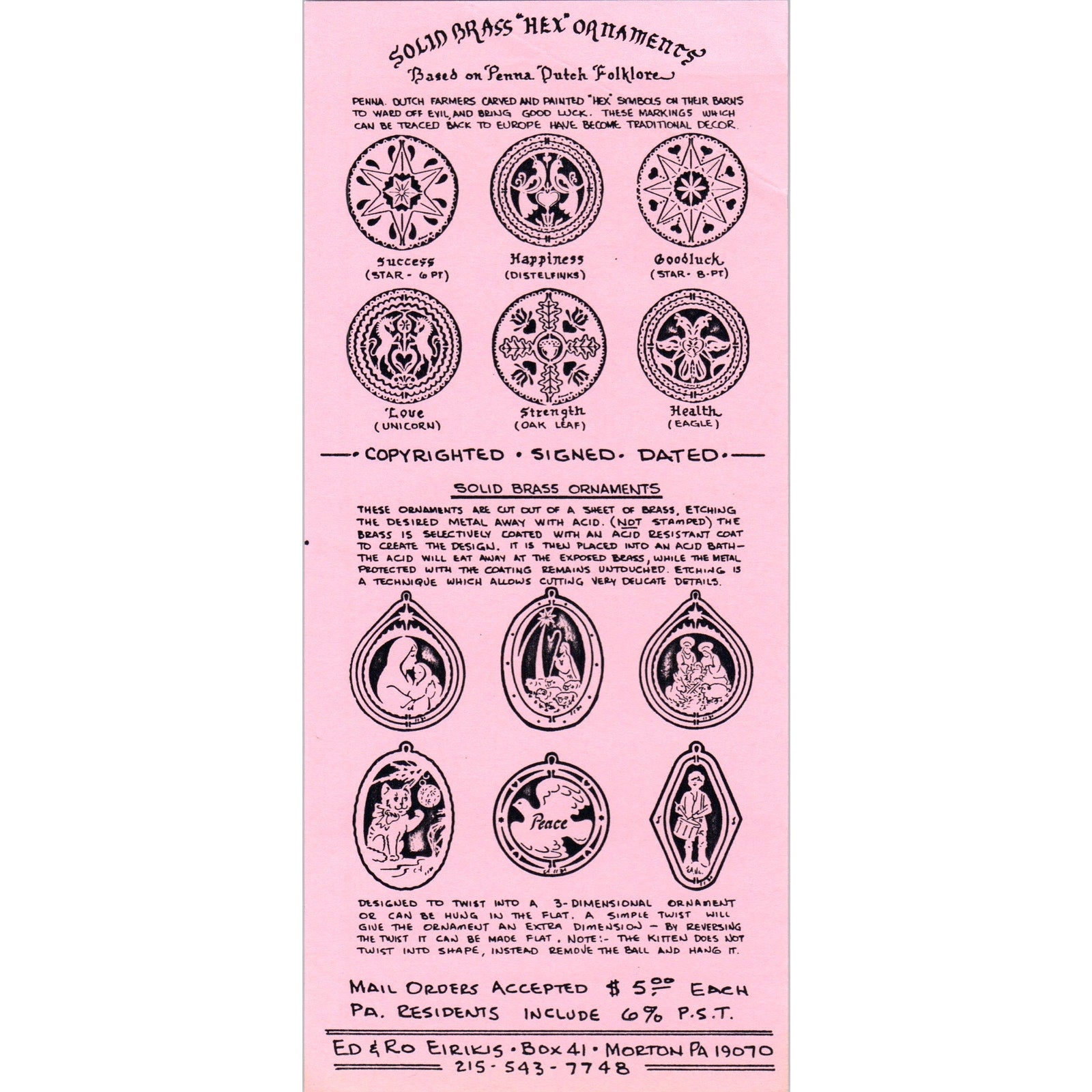 1970s Solid Brass Hex Ornaments Dutch Folk Art Ed & Ro Eirkis Morton PA Leaflet TF4-BB
