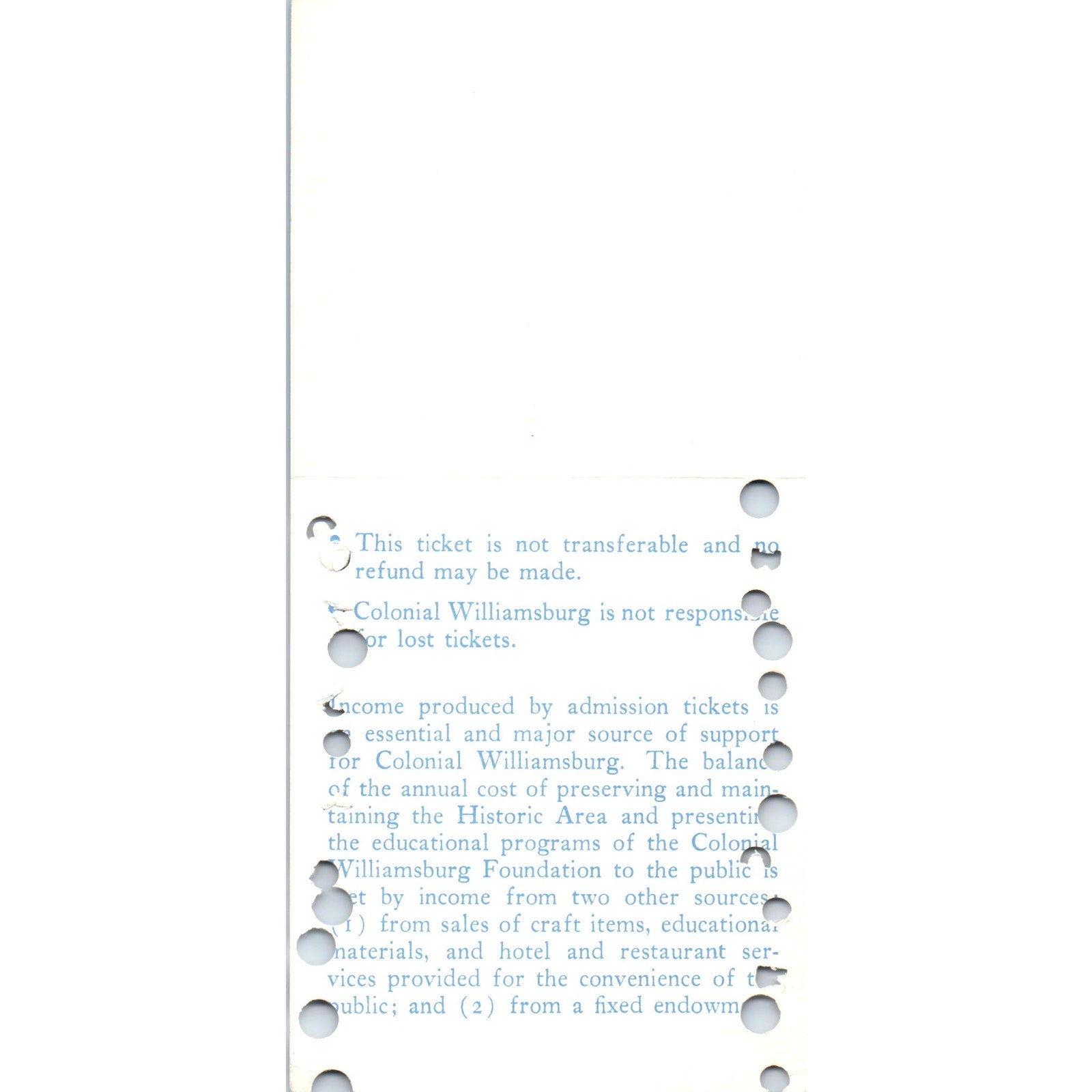 1970s Colonial Williamsburg Twenty Five Admission Punch Card Stub TF4-BC