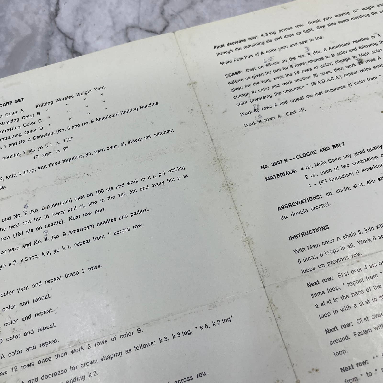 1970s Crochet King Patterns No. 2027 A Tam & Scarf Set No. 2027 B Cloche & Belt TJ3