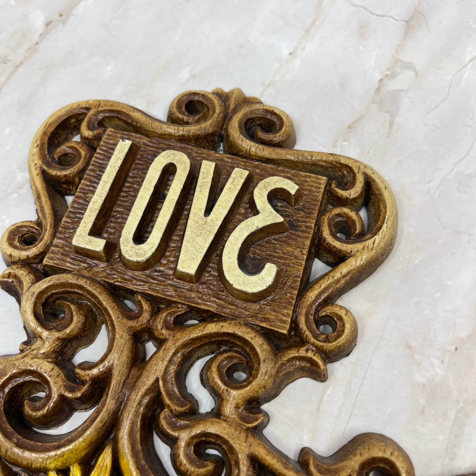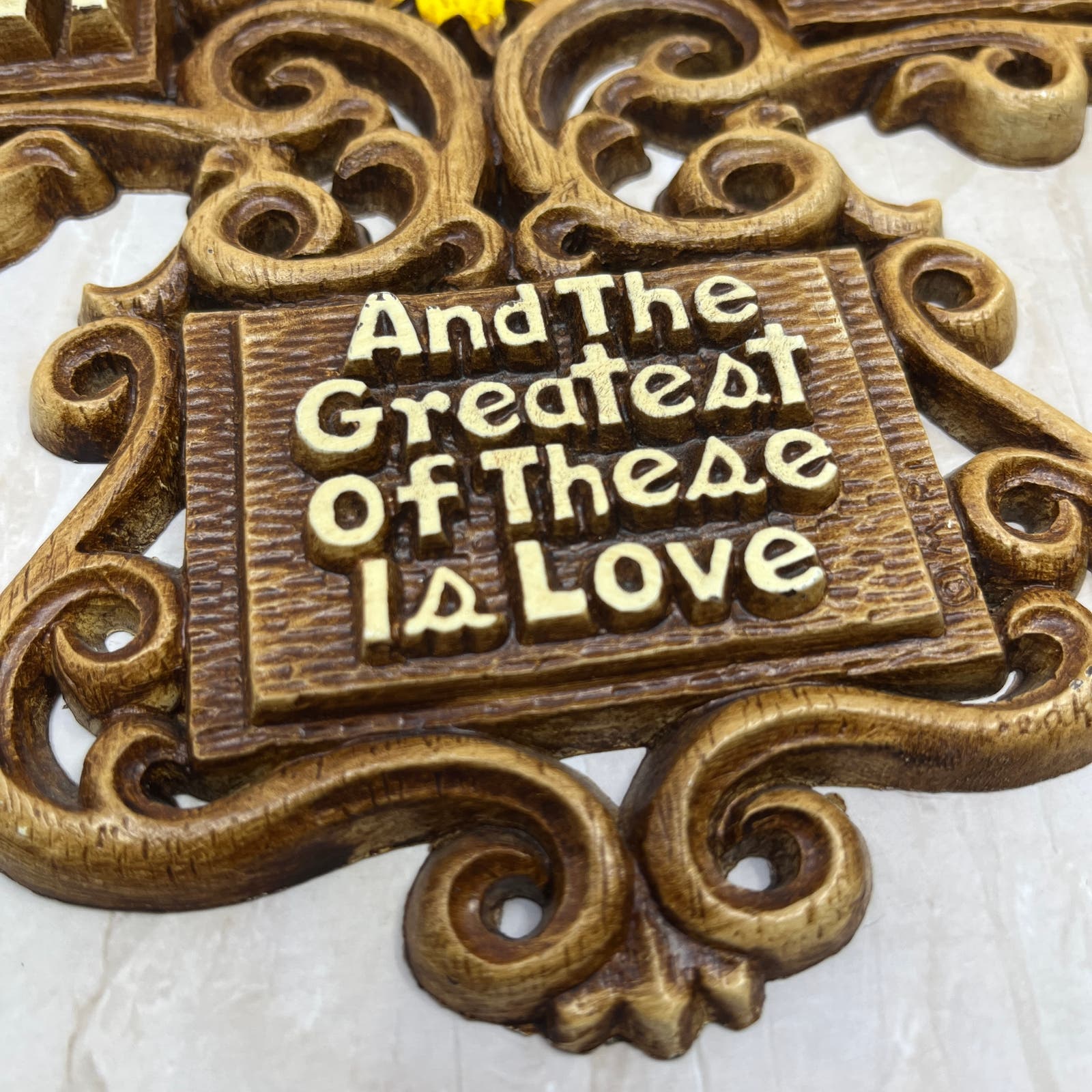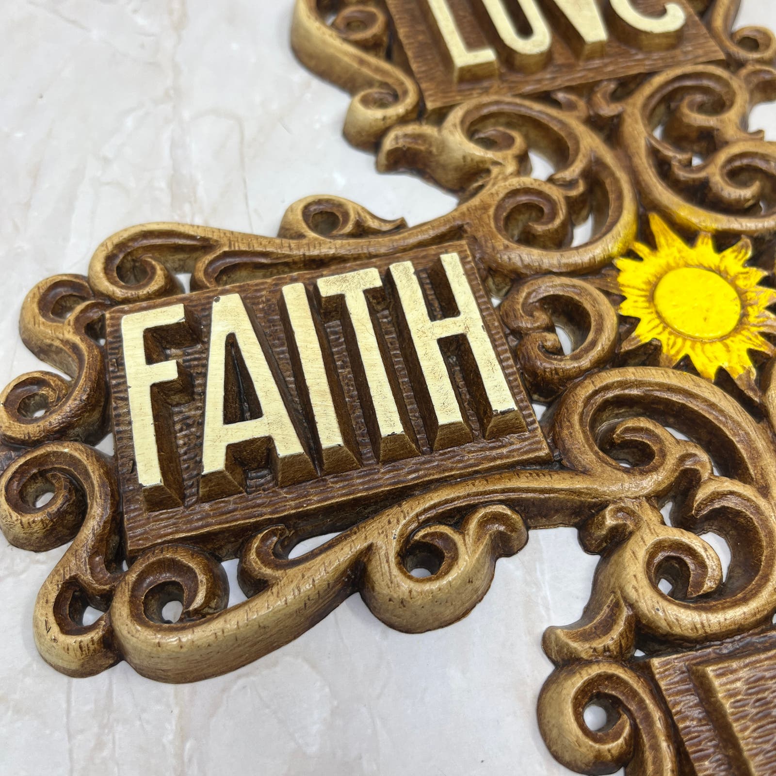 1970s Kitsch Cross Love Faith Hope Wall Plaque Multi-Products Resin 11” TD5