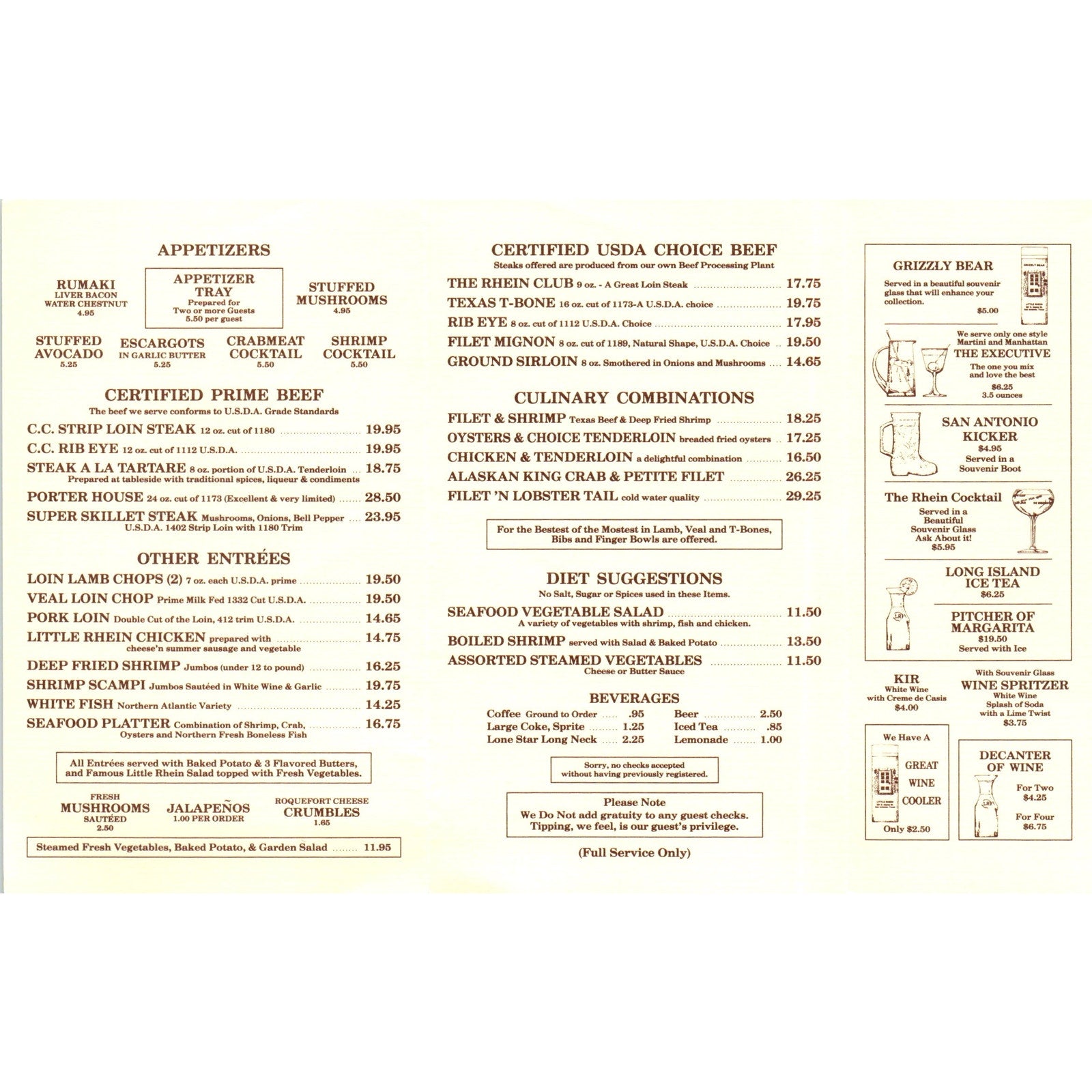 1970s Phelps' Little Rhein Steak House Pocket Menu San Antonio TX TF4-BC