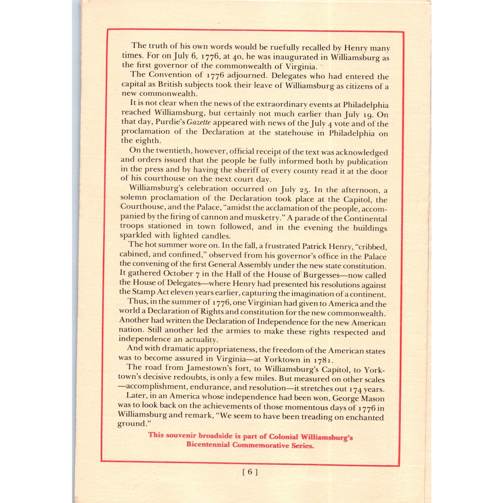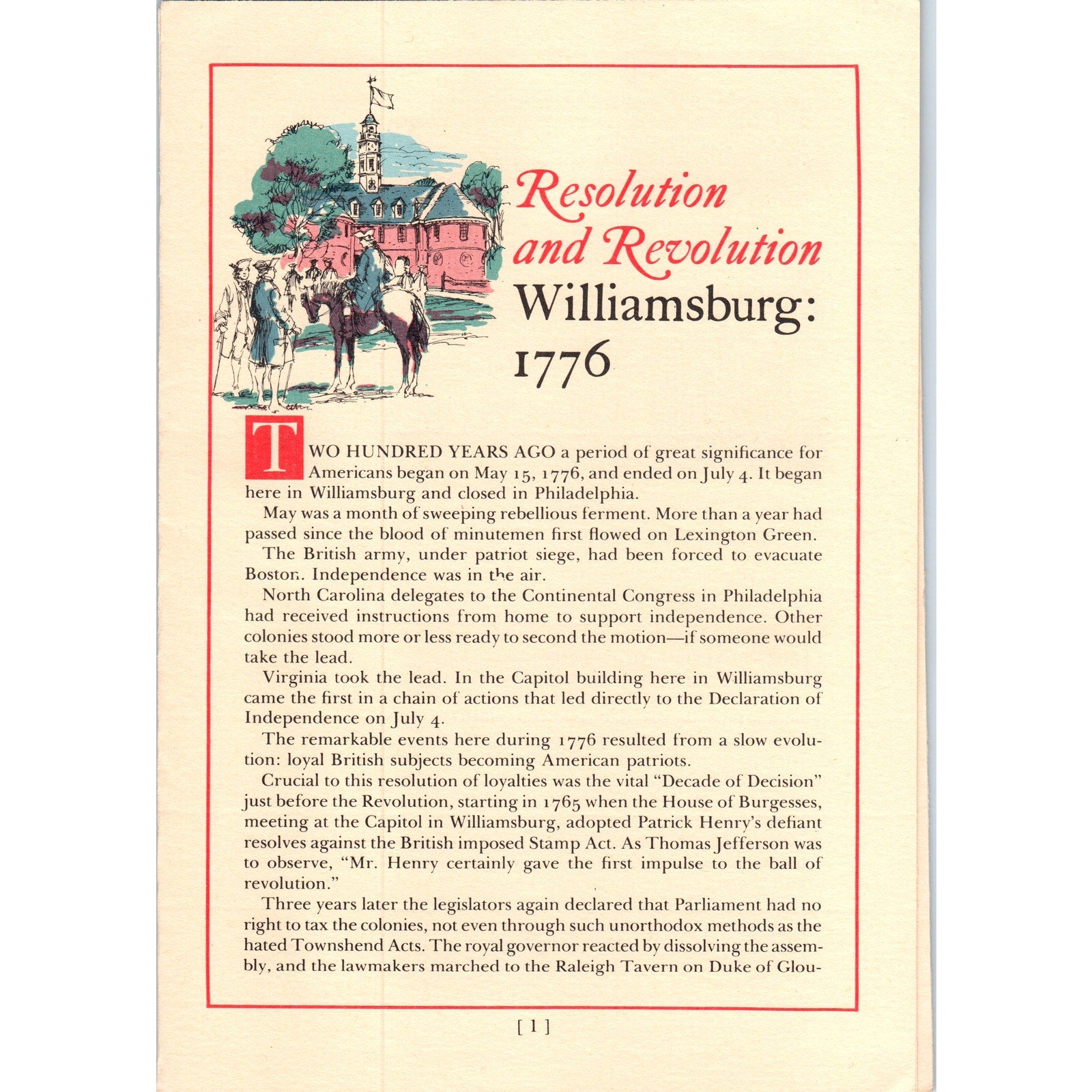 1970s Resolution and Revolution Williamsburg 1776 Travel Pamphlet TF4-BD