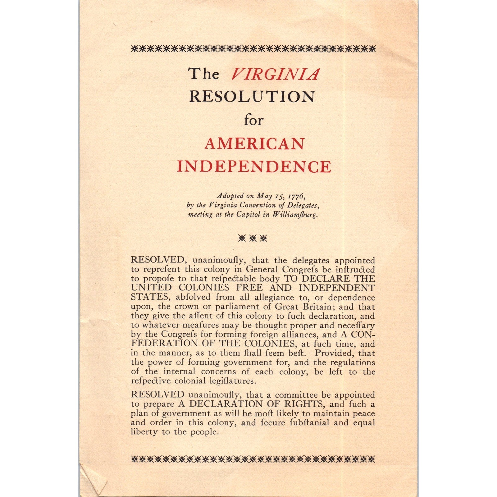 1970s The Prelude to Independence Williamsburg Virginia Travel Pamphlet TF4-BD