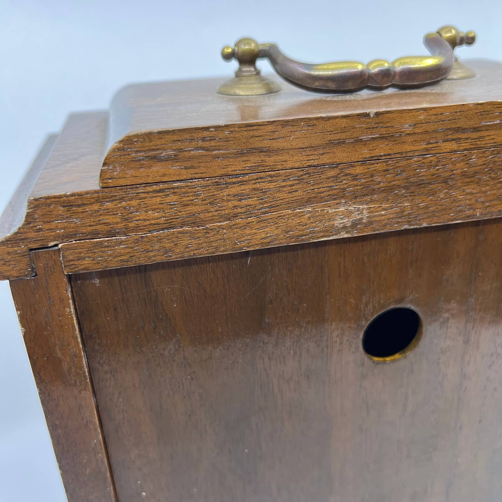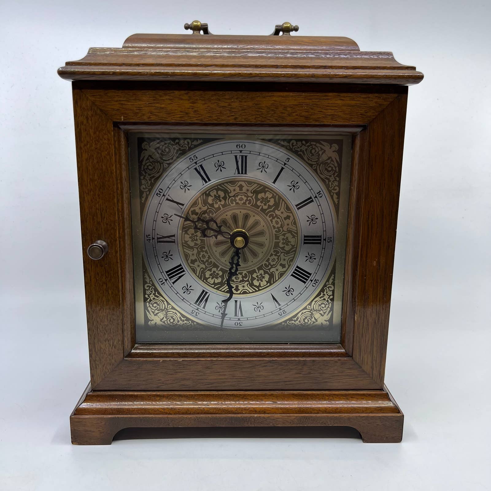 1970s Wood Case Mantel Clock Quartz Mvt USA 8.5x10” WORKS TH5