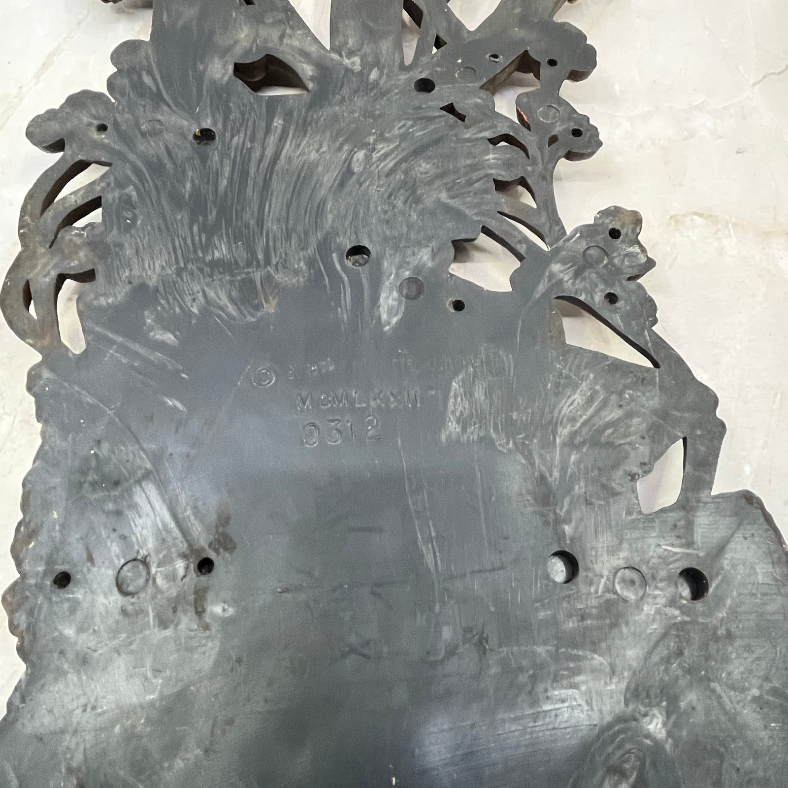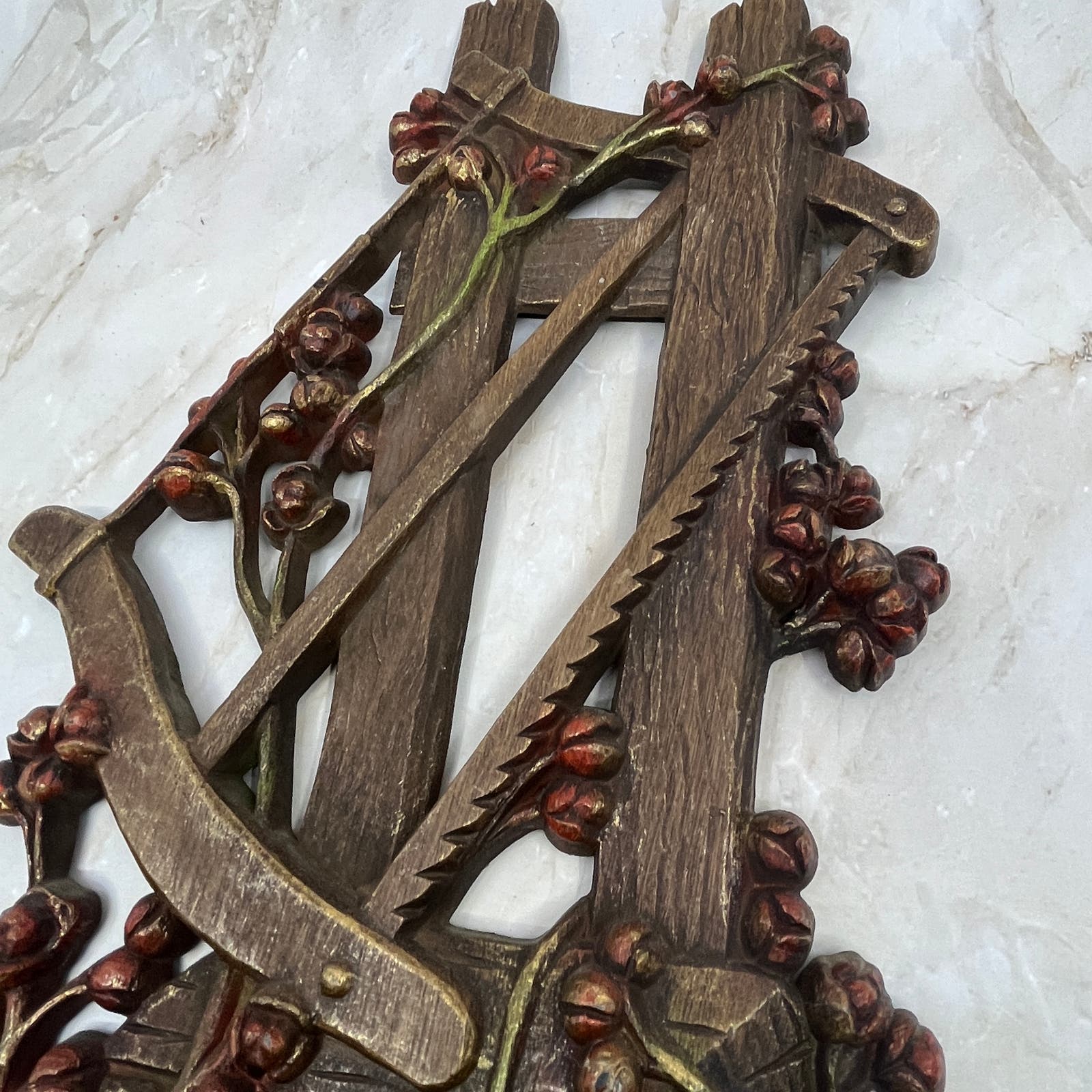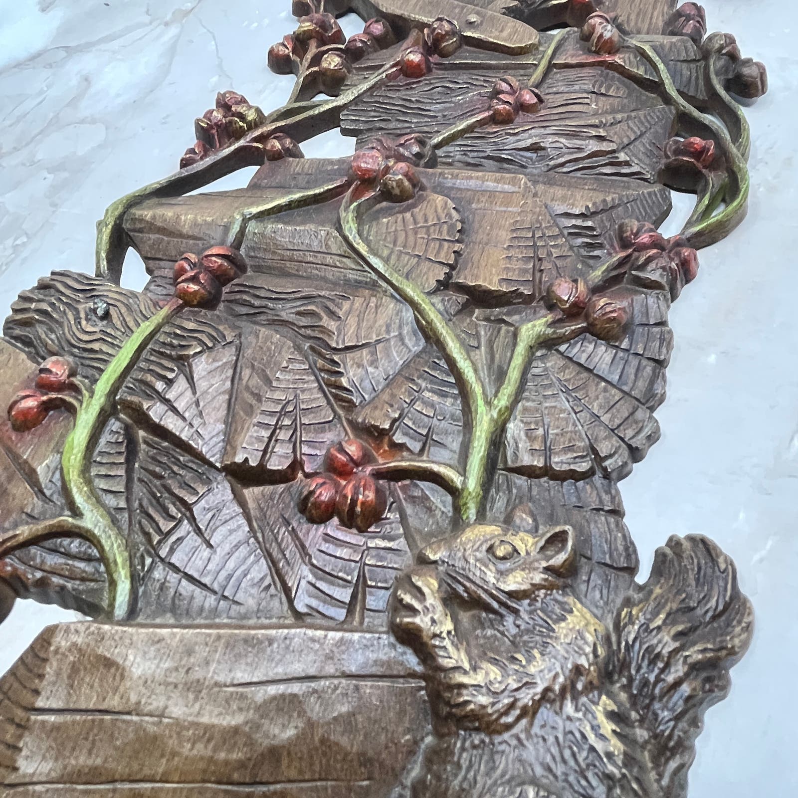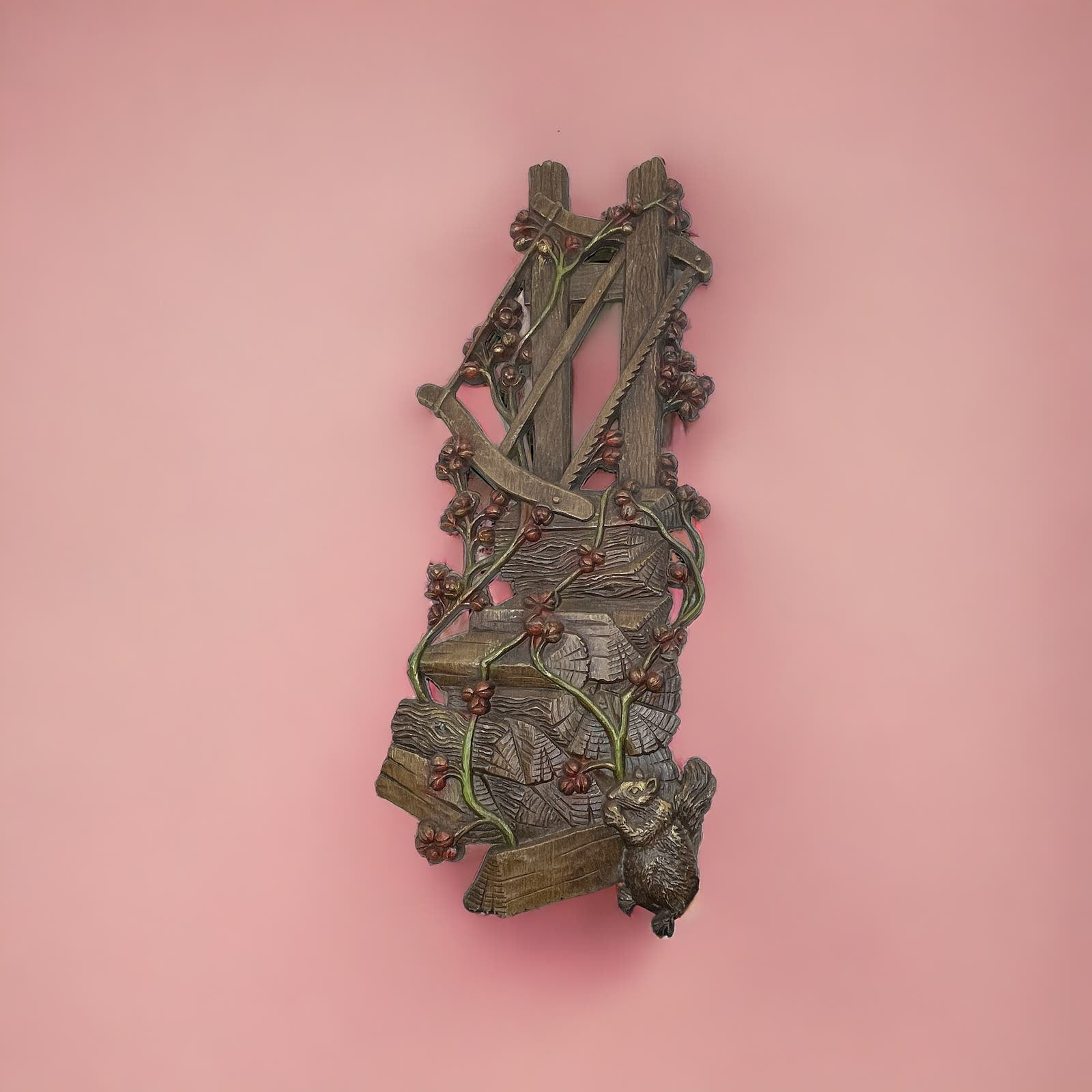 1972 Burwood Resin Wall Hanging Plaque Old Wood Pile Squirrel Hand Saw 18x7 TJ9