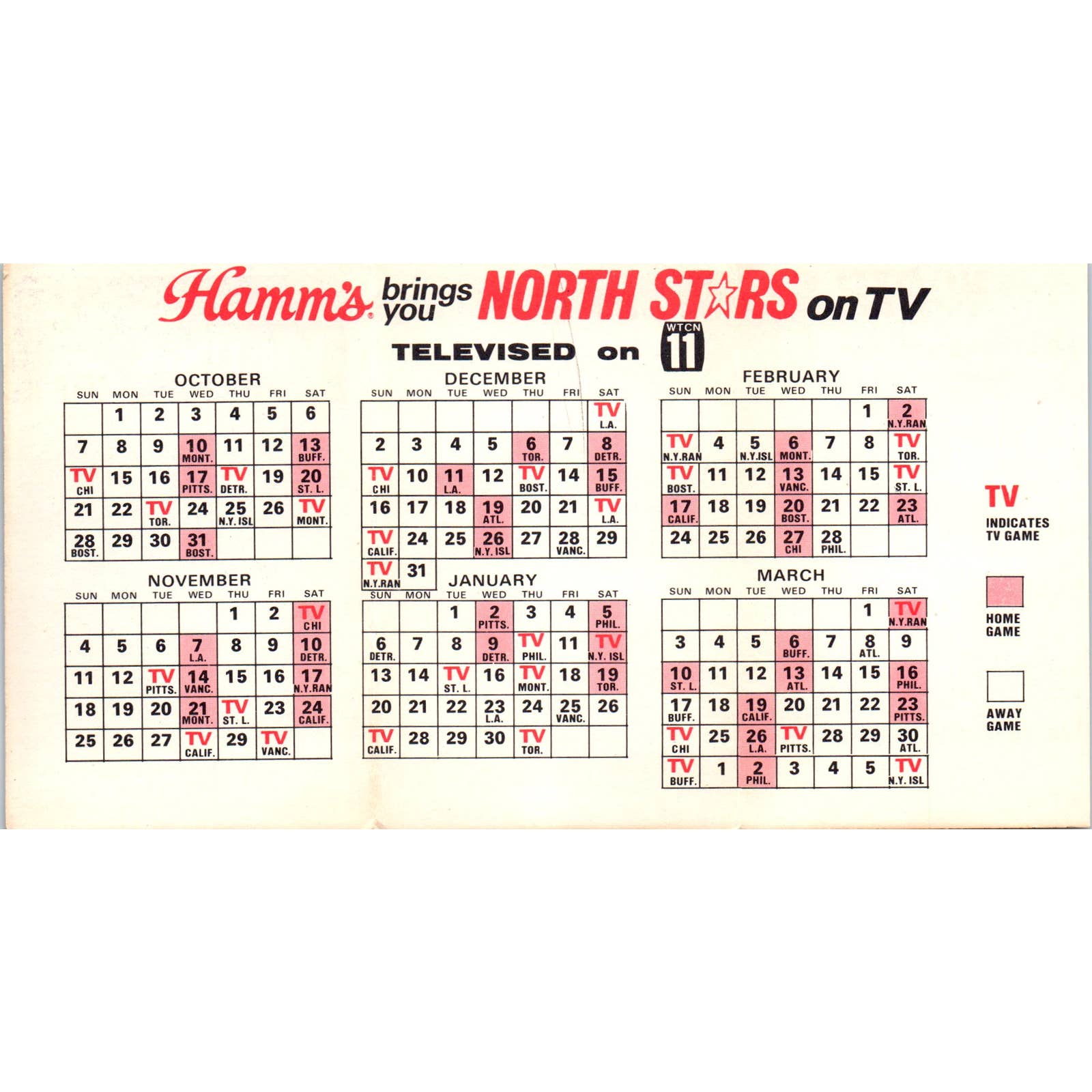 1973-74 Schedule Winter Sports North Stars Vikings Gophers Hamms TK1-P3
