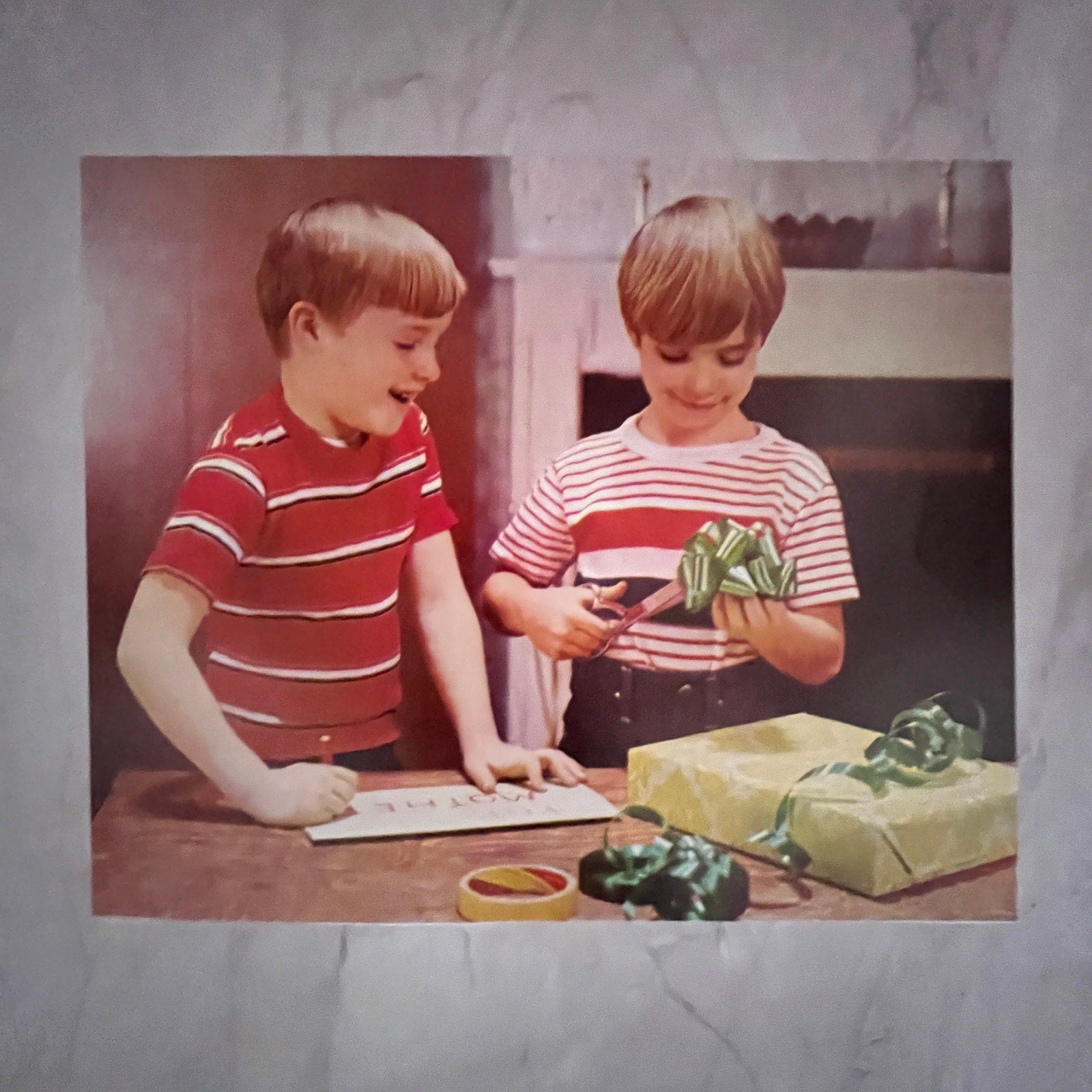 1973 Retro Kitsch Children Wrapping Mother's Day Gift 8x10" Art Print V23
