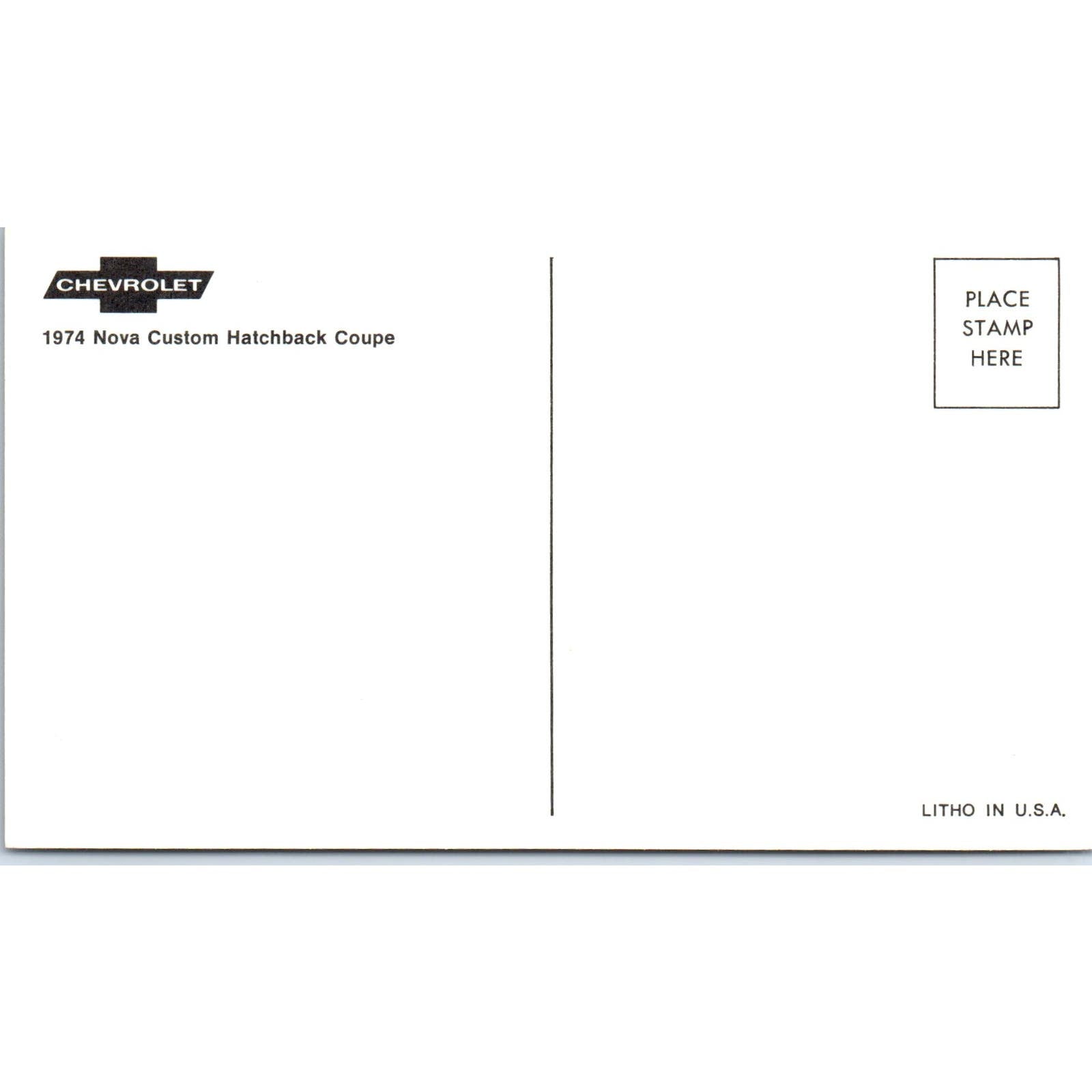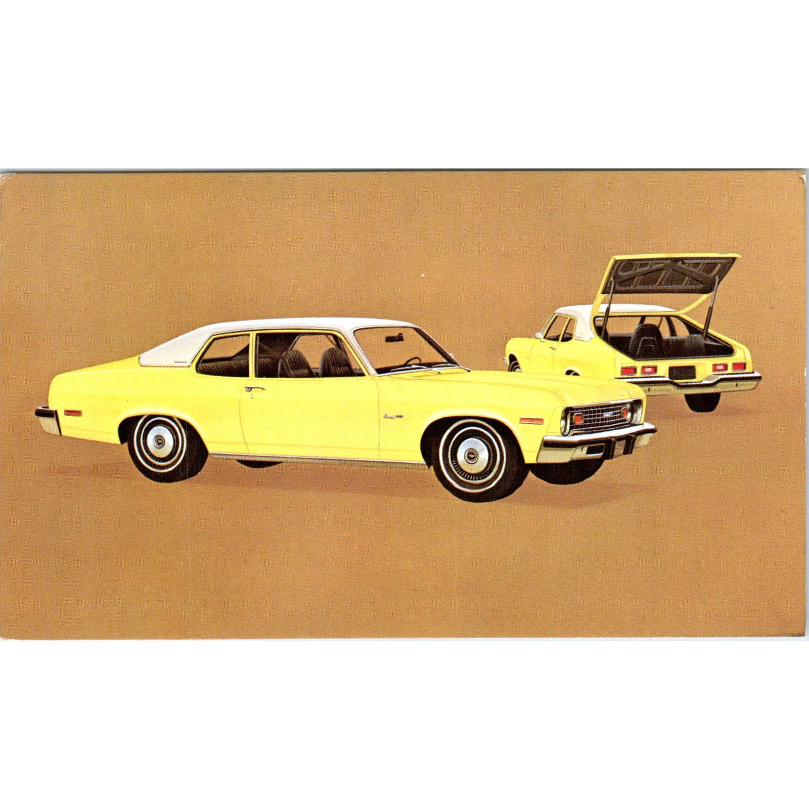 1974 Chevrolet Chevy Nova Custom Hatchback Coupe Yellow Vintage Postcard PC4