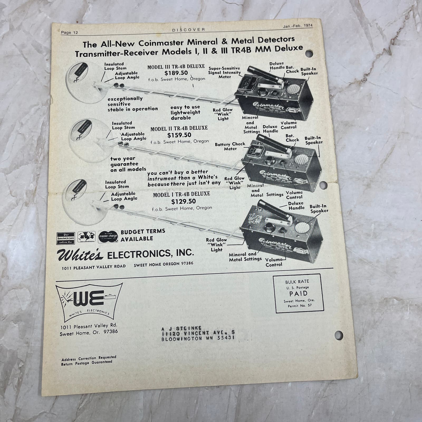 1974 Jan/Feb White's Electronics Discover Newsletter Metal Detector Treasure M19