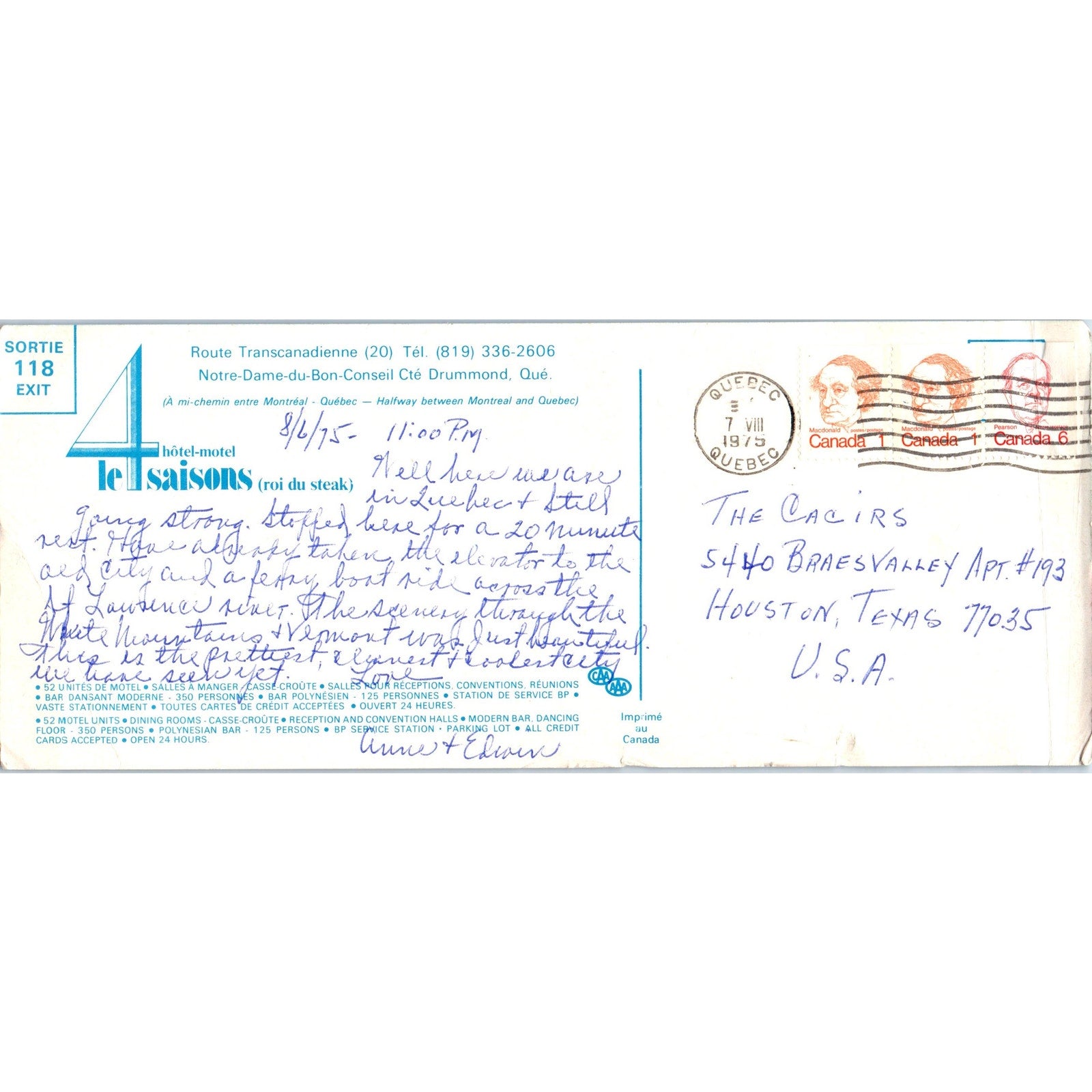 1975 Le 4 Seasons Hotel Quebec Canada Elongated Postcard AB8-RS1