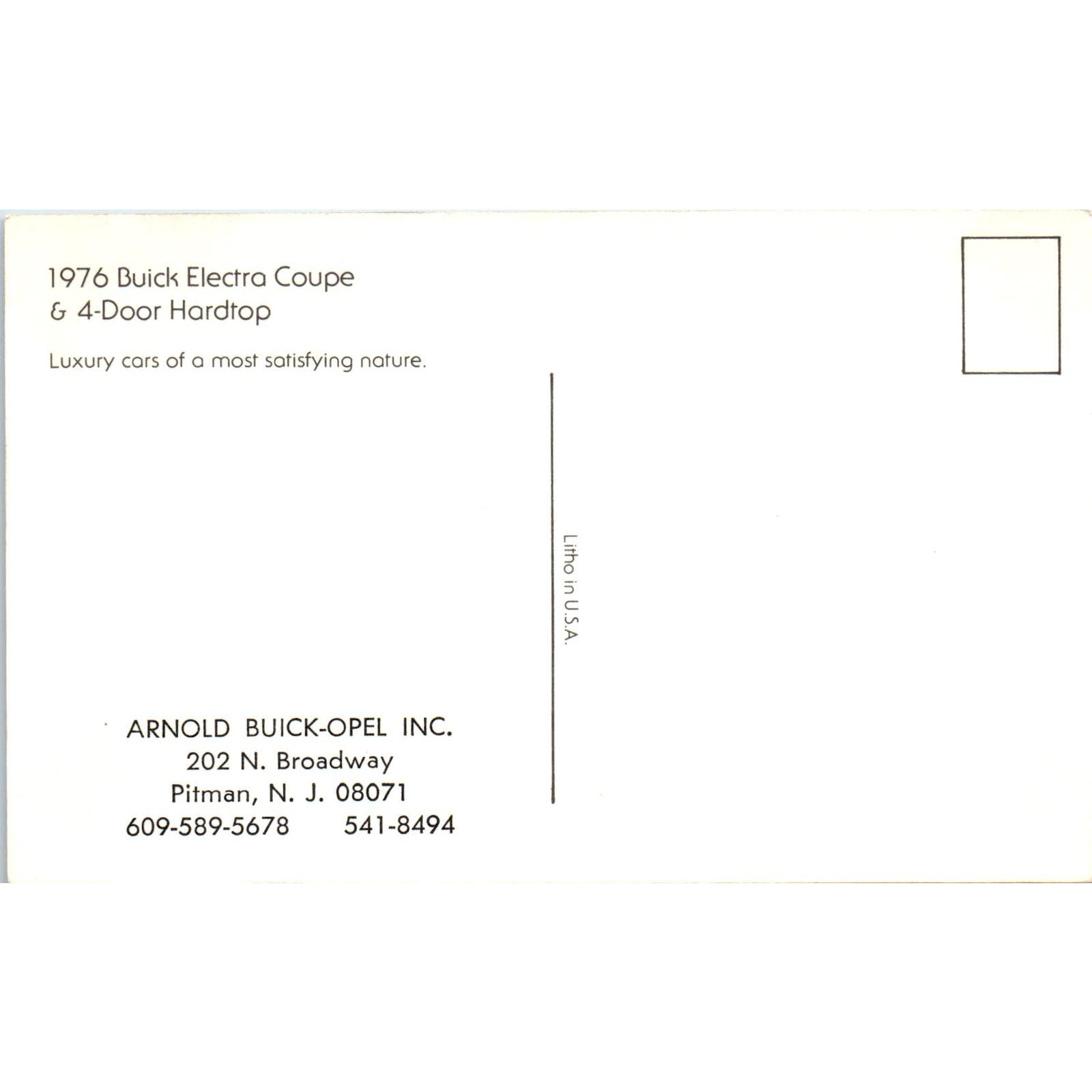1976 Buick Electra Coupe Hardtop Arnold Buick-Opel Pitman NJ Vintage Postcard PC11