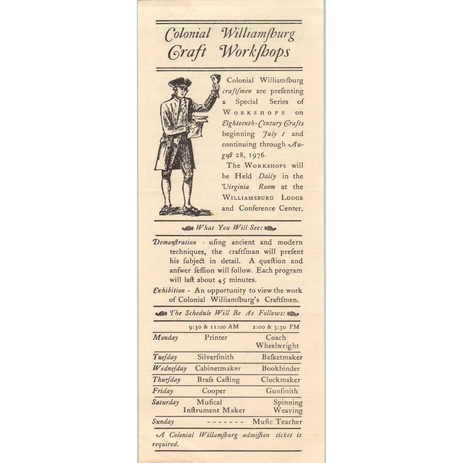 1976 Colonial WIlliamsburg Craft Workshops Bicentennial Travel Leaflet TF4-BD