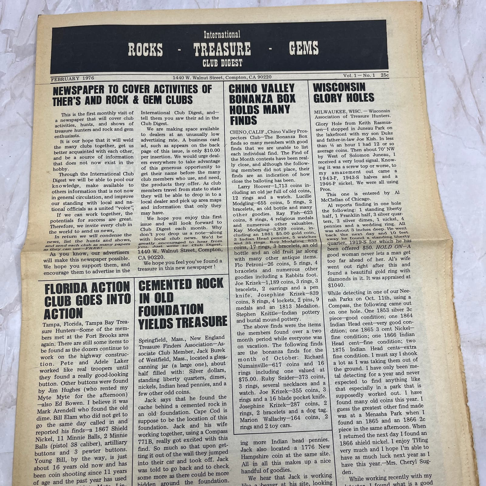 1976 Feb - International Treasure Club Digest - Treasure Hunting Gems Rocks M18