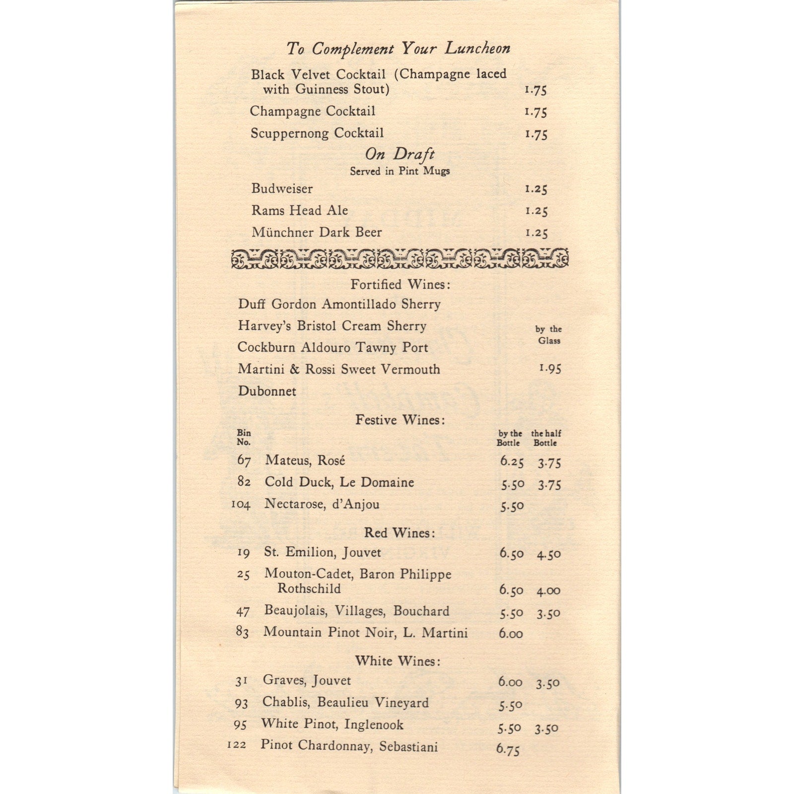 1976 Midday Fare at Christiana Campbell's Tavern Bicentennial Leaflet TF4-BD