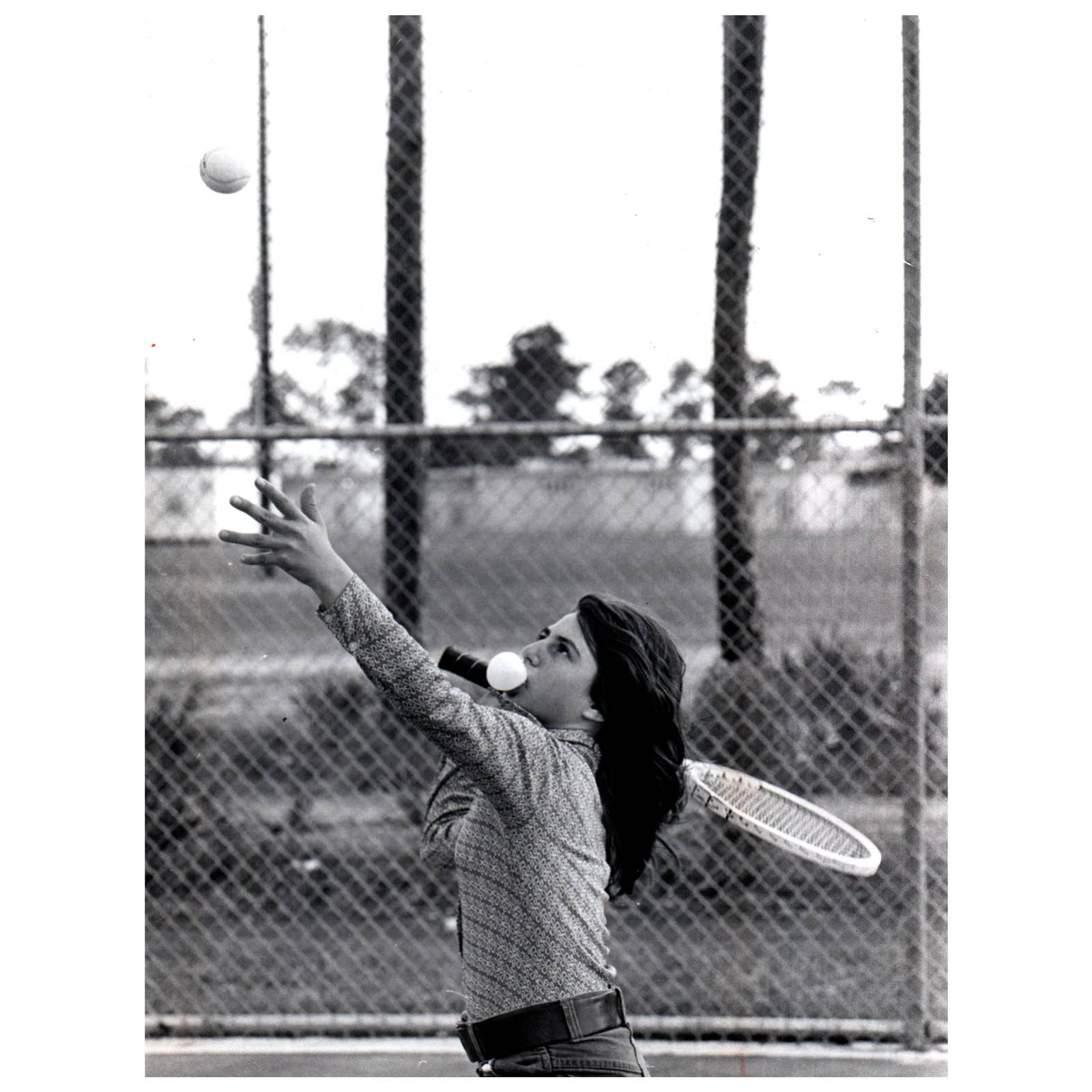 1976 Original Press Photo Women's Tennis Lesson Blowing Bubble Gum 6x8" AD2