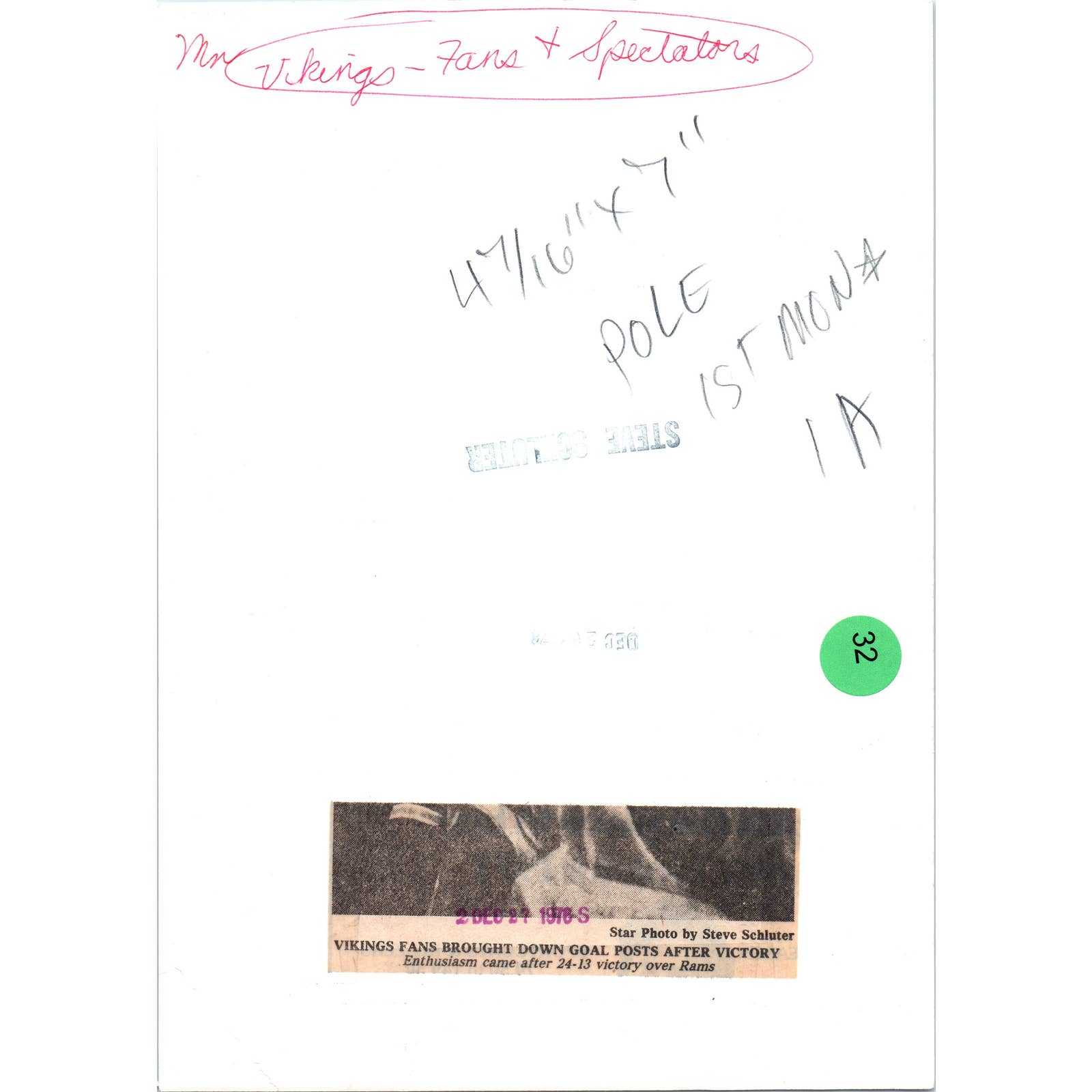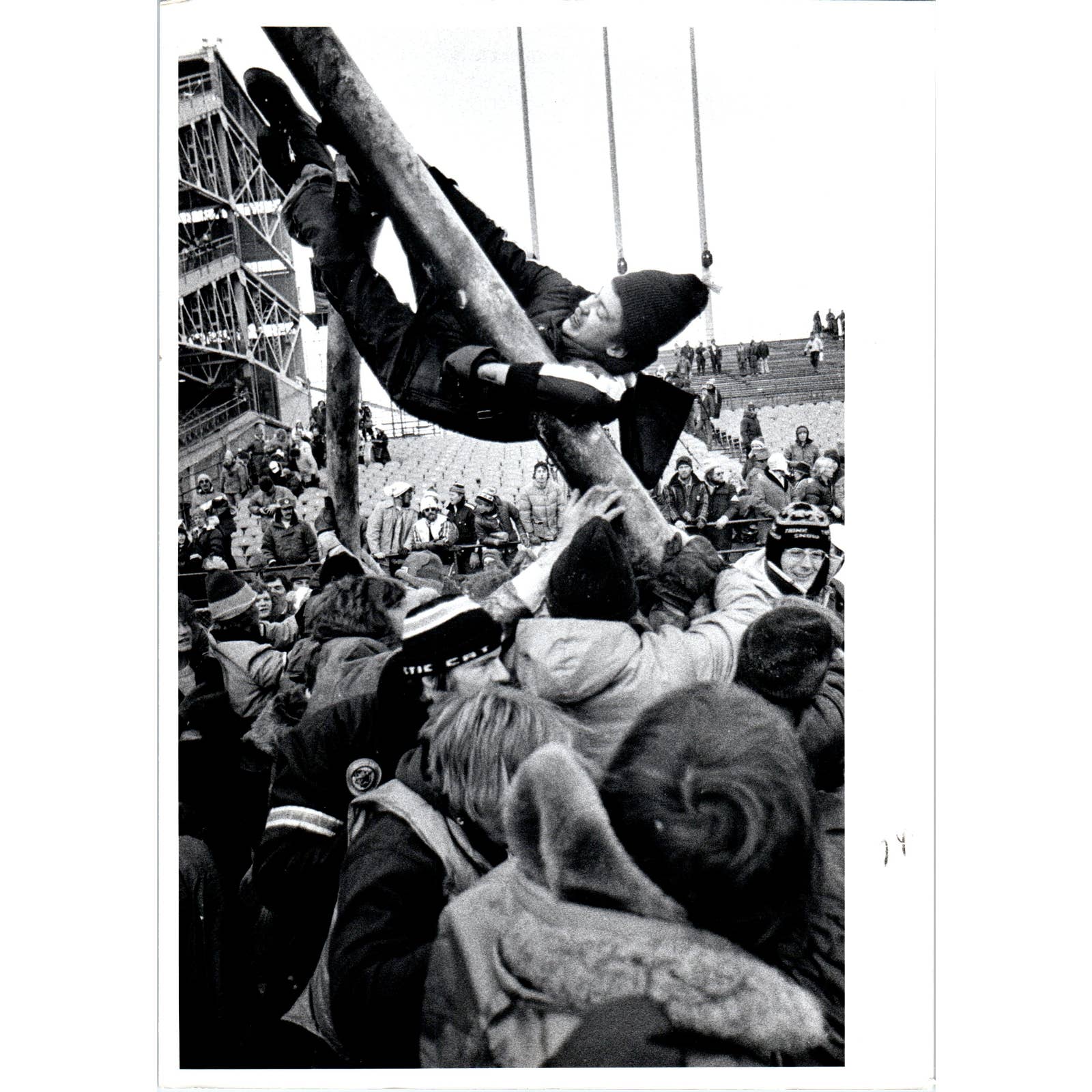 1976 Original Press Photo Football NFL Minnesota Vikings Fans Bring Down Goalpost 7x9" TK2-FP