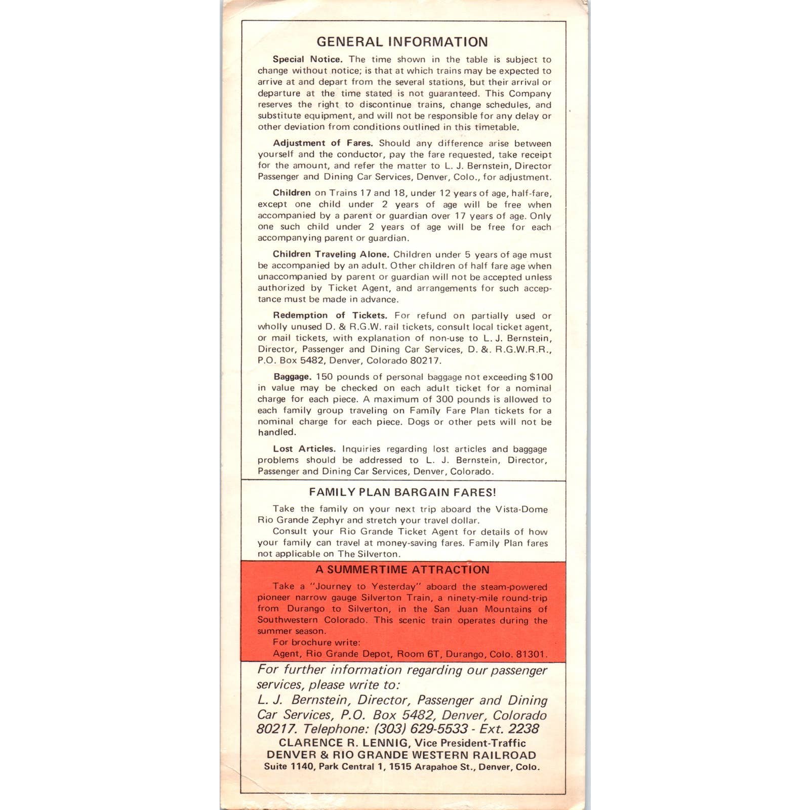 1977 Aug 1 Rio Grande Action Railroad Timetables Denver Salt Lake City Ogden SE8