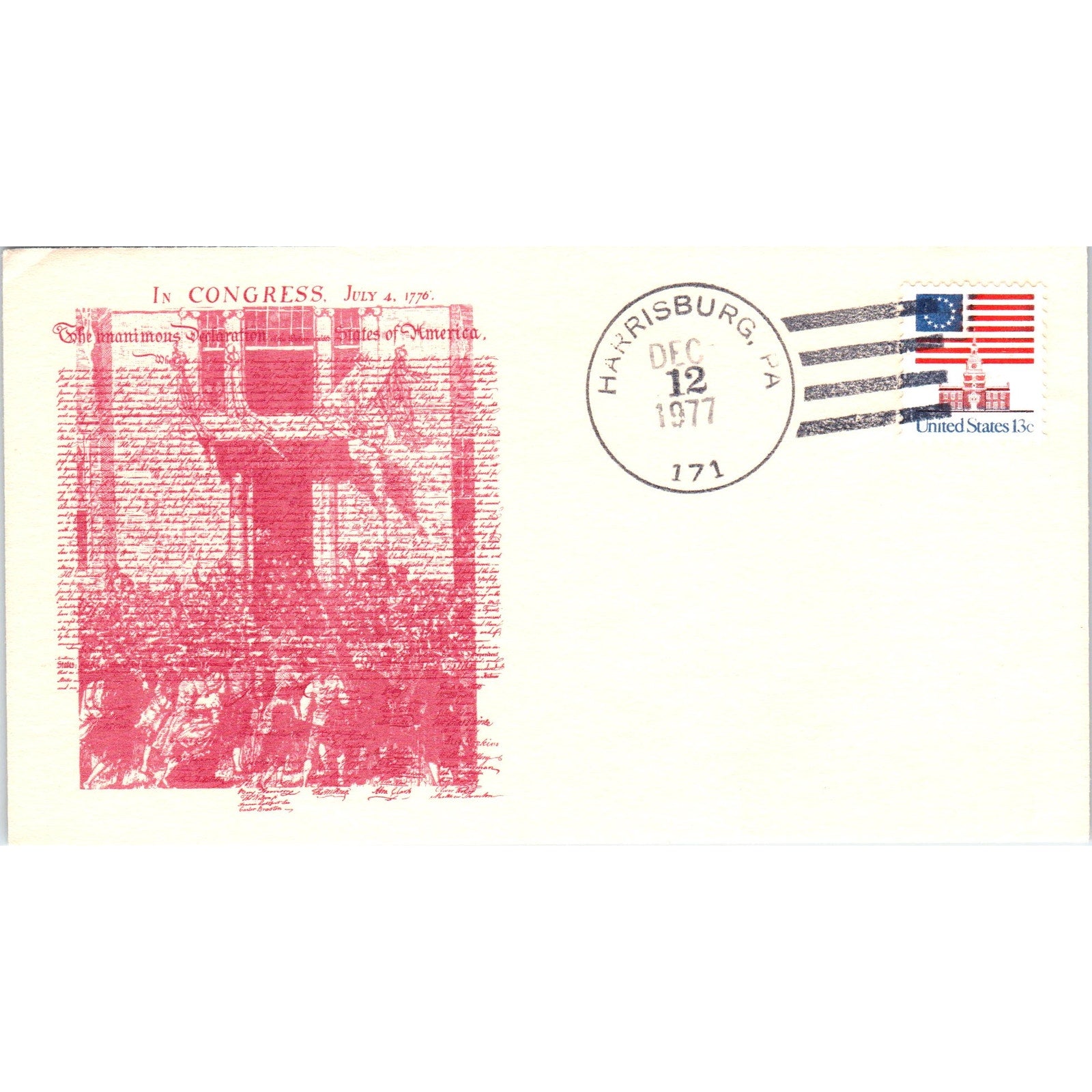 1977 Declaration of Independence Harrisburg PA Postal Cover TI5-PC1