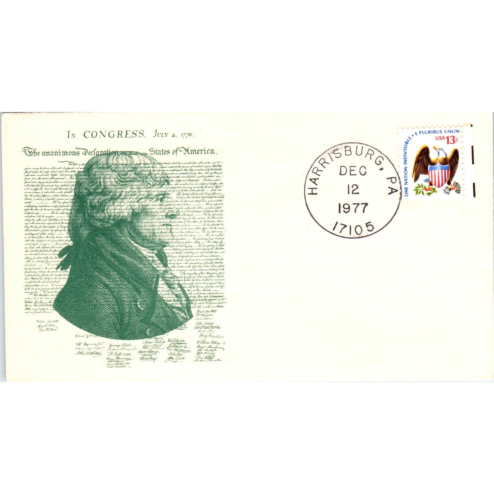 1977 Declaration of Independence Thomas Jefferson Harrisburg PA Postal Cover TI5-PC1