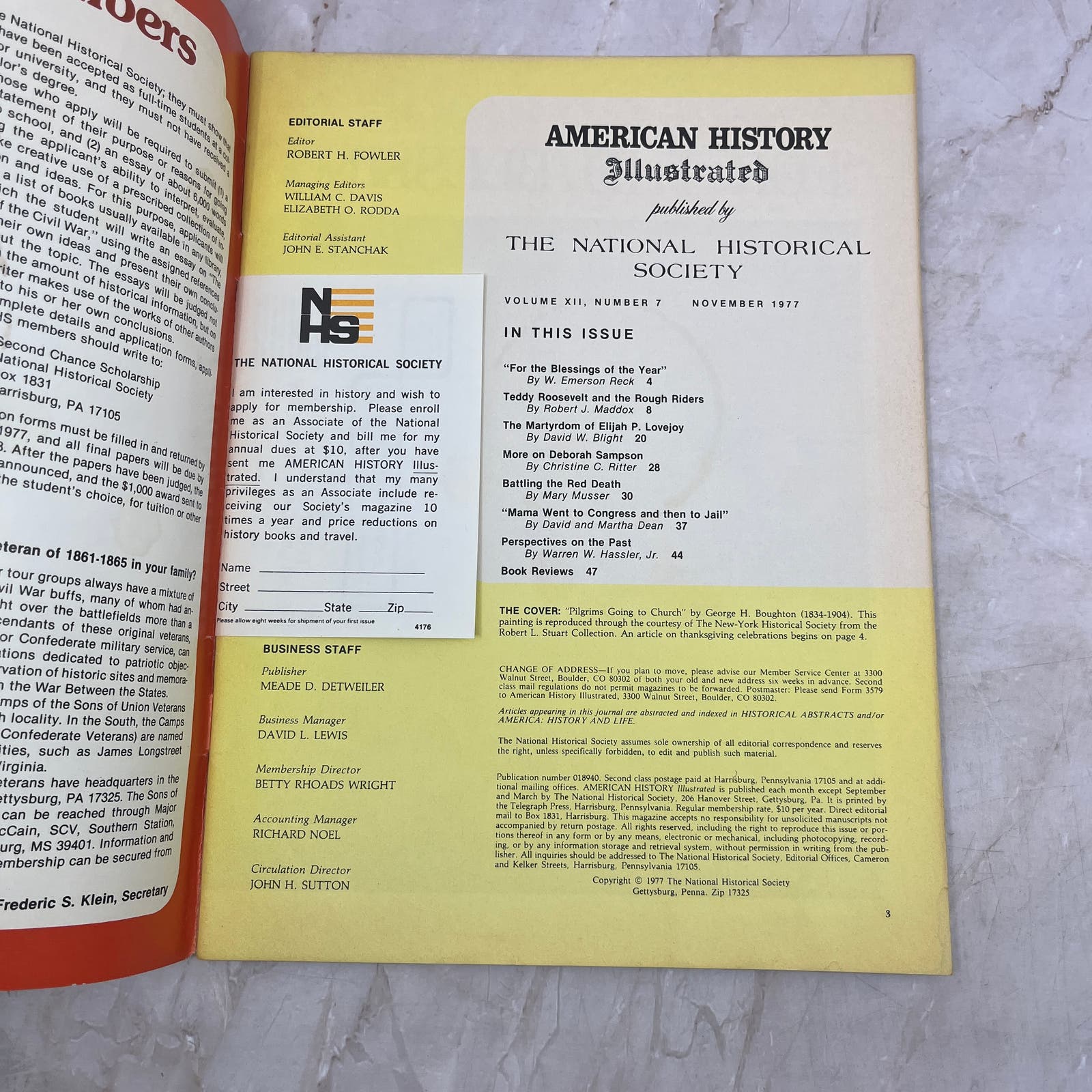 1977 Nov - American History Illustrated Magazine - Pilgrims Going to Church M21
