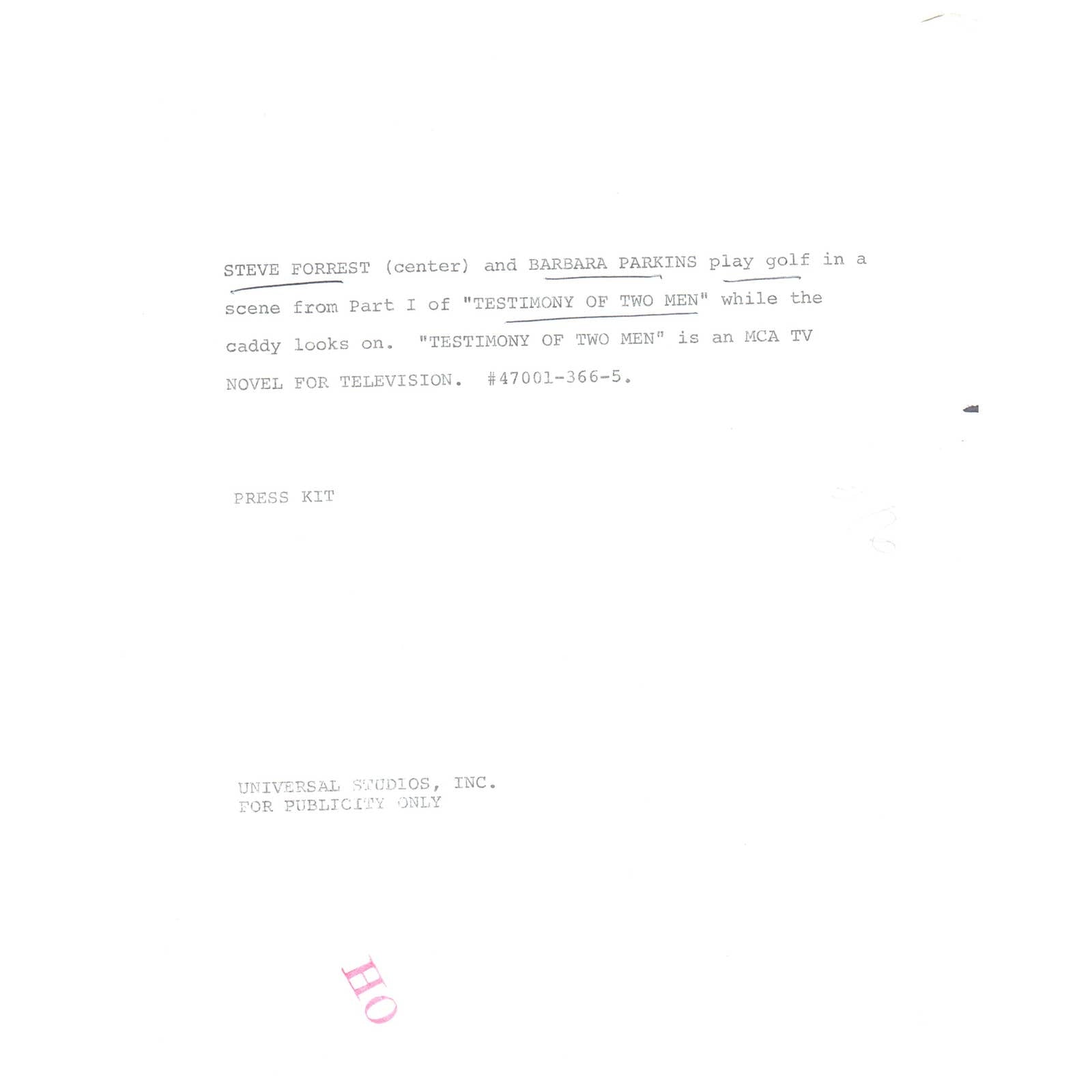 1977 Press Photo Testimony of Two Men Golf Scene Steve Forrest Barbara Perkins 8x10" AD3