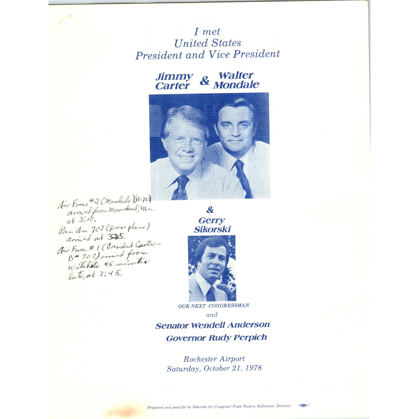 1978 Political Leaflet Gerry Sikorski Wendell Anderson Rudy Perpich Jimmy Carter Walter Mondale Rochester MN TK1-P11