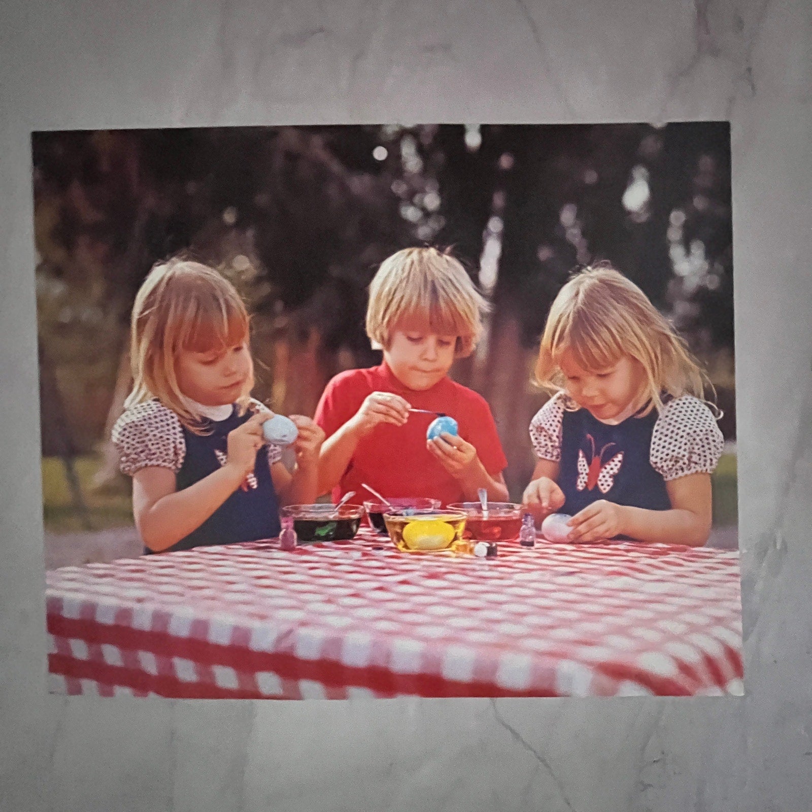 1978 Retro Kitsch Children Decorating Easter Eggs 8x10" Art Print V23