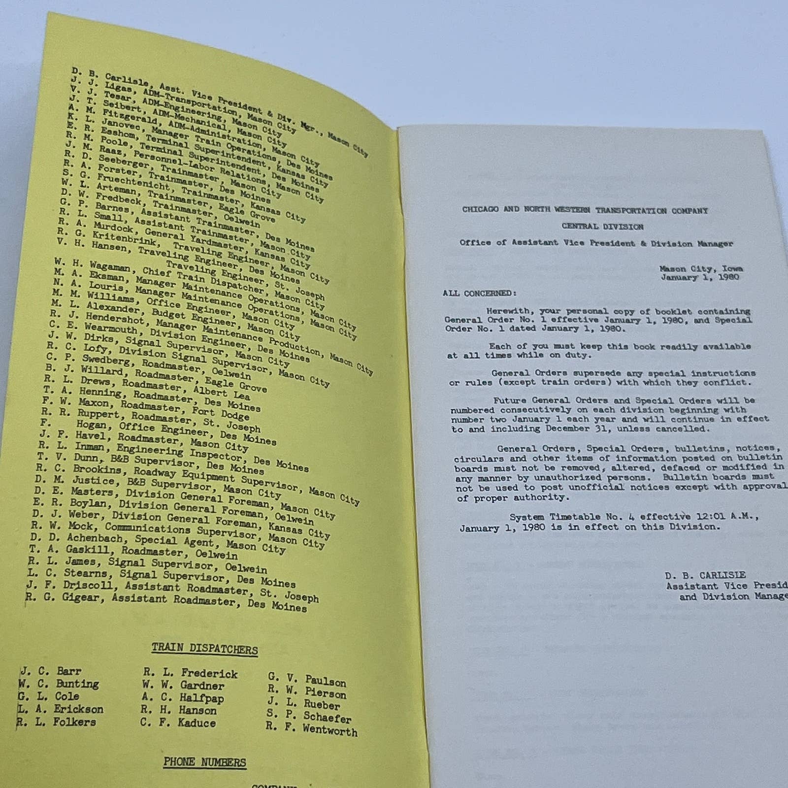 1980 Chicago & Northwestern Railroad Central Division General Order No. 1 TG6