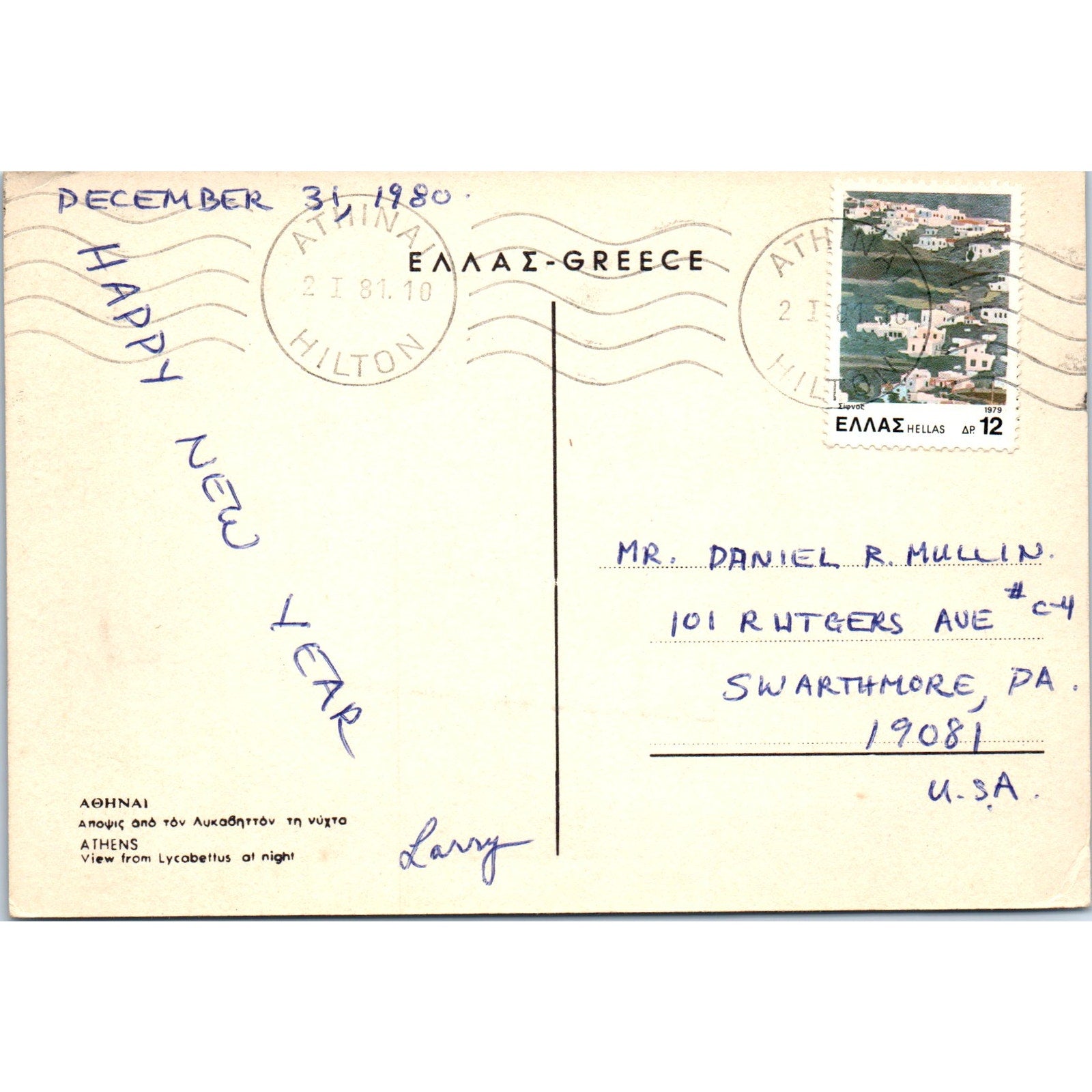 1980 Greece Athens View from Lycabettus at Night Postcard PD8