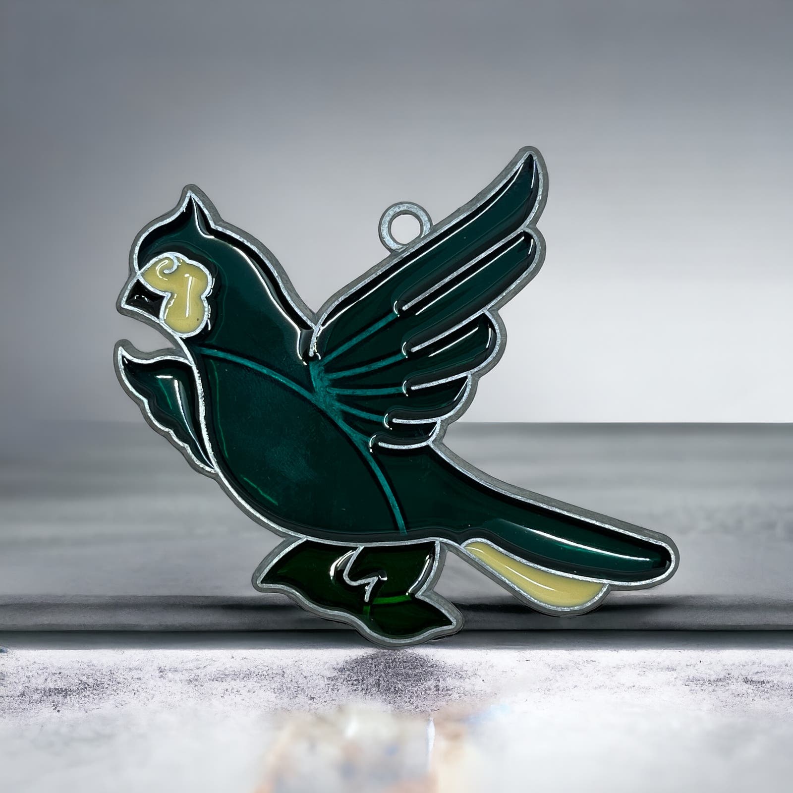 1980s Green Turquoise Bird Stained Glass Suncatcher 3.5” TE5-S1