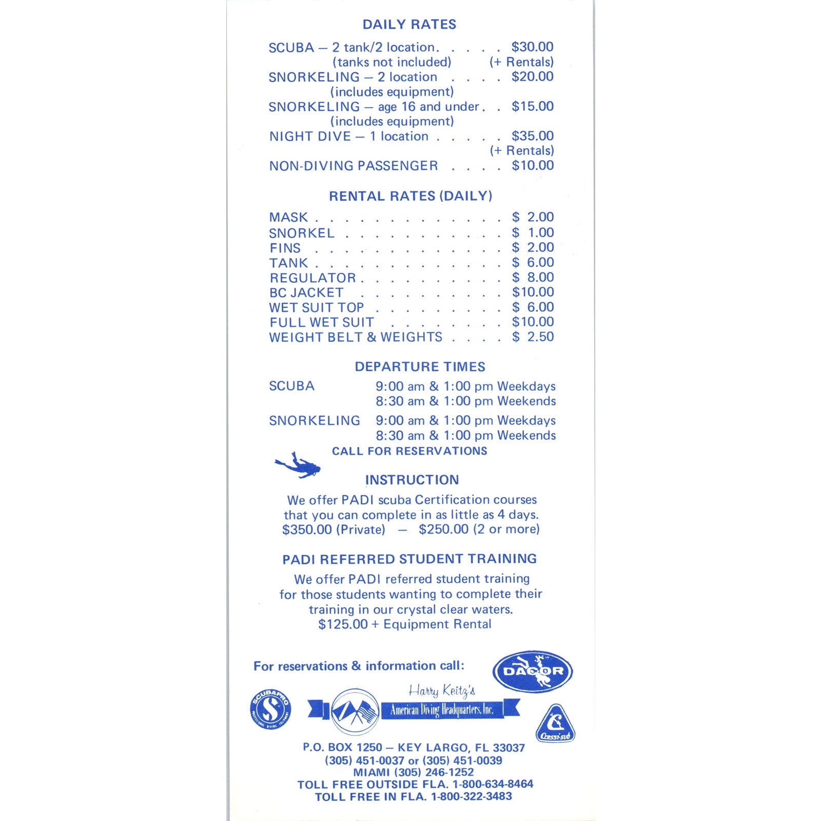 1980s Pennekamp's Underwater State Park Dive or Snorkel Key Largo Florida Leaflet TF4-BA