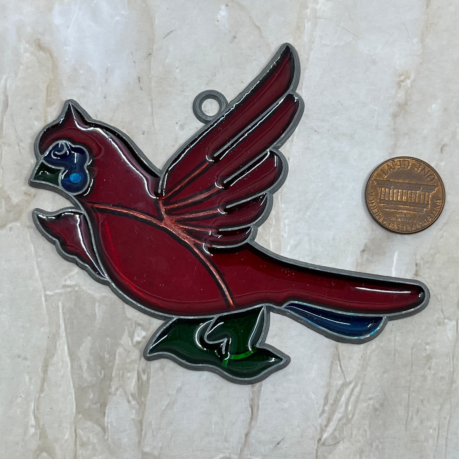1980s Red Cardinal Bird Stained Glass Suncatcher 3.5” TE5-S1-1