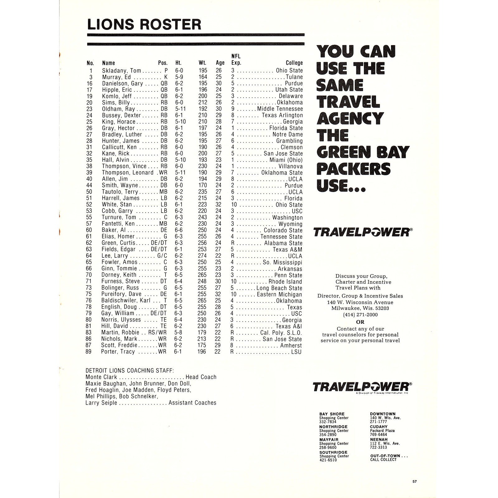 1981 Green Bay Packers Vs. Detroit Lions Gameday Roster Fold Out 8x11" 1981 Ad D26
