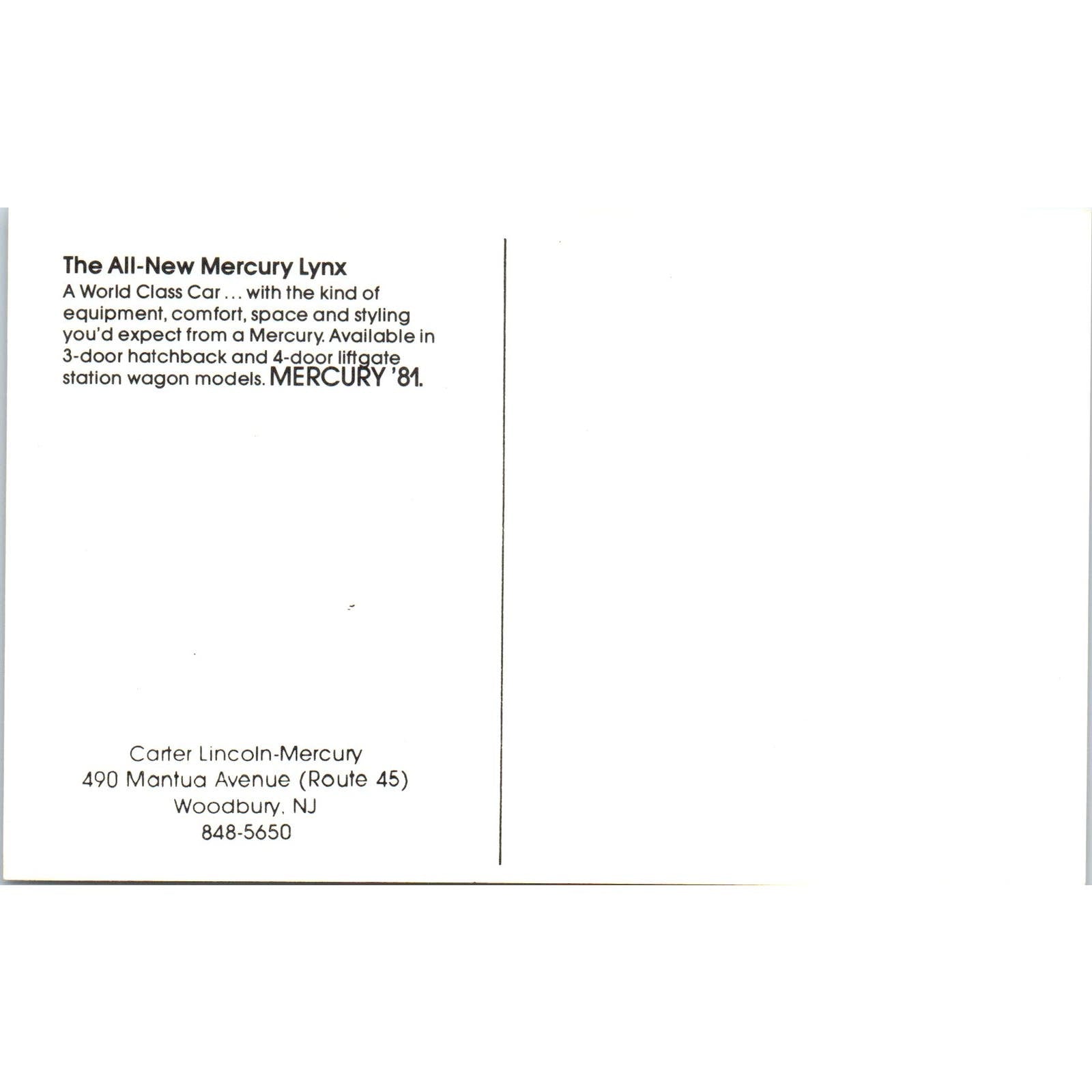 1981 Mercury Lynx Carter Lincoln-Mercury Woodbury NJ Vintage Postcard PC12