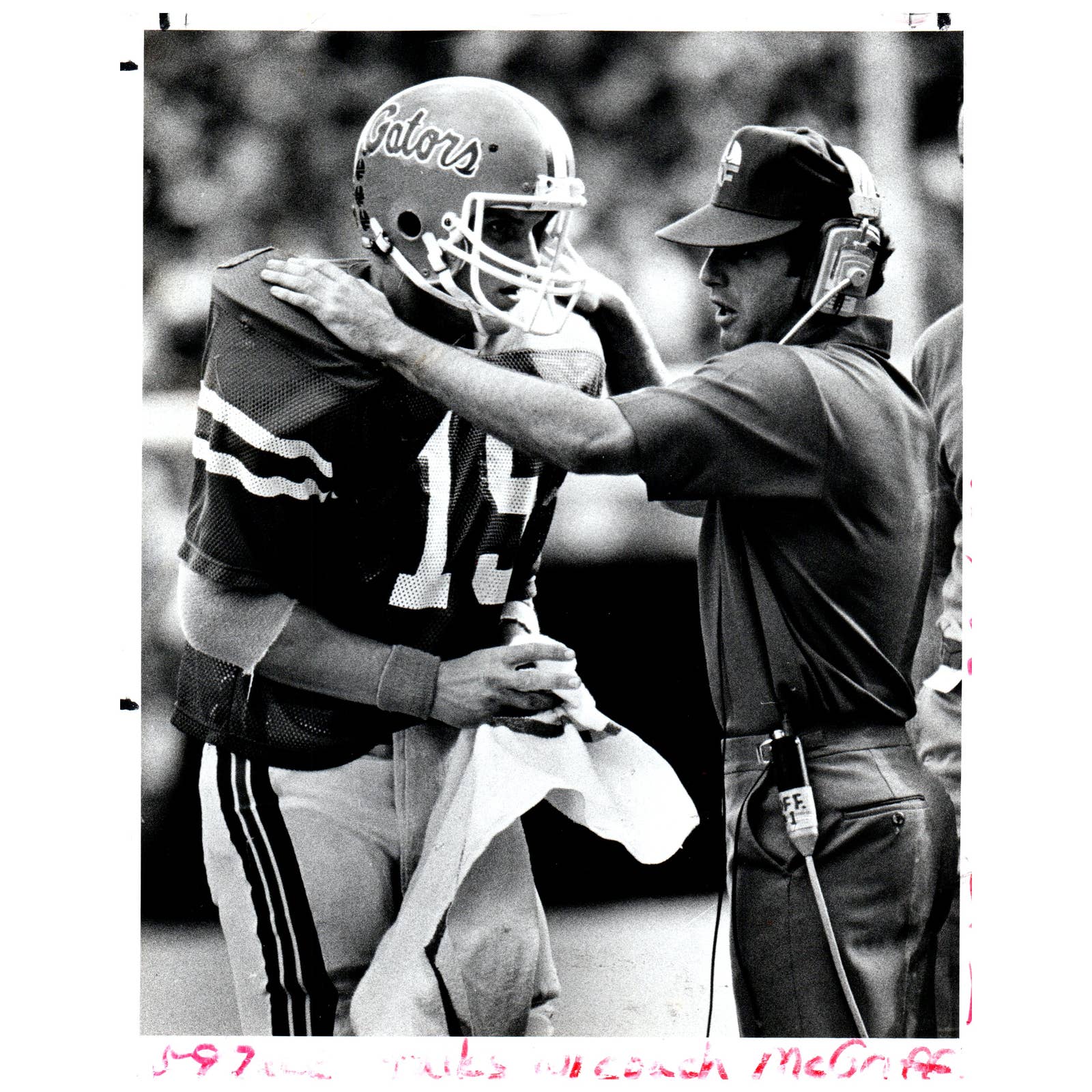 1981 Press Photo Football Florida Gators QB Wayne Peace With Lee McGriff 8x10" AD3