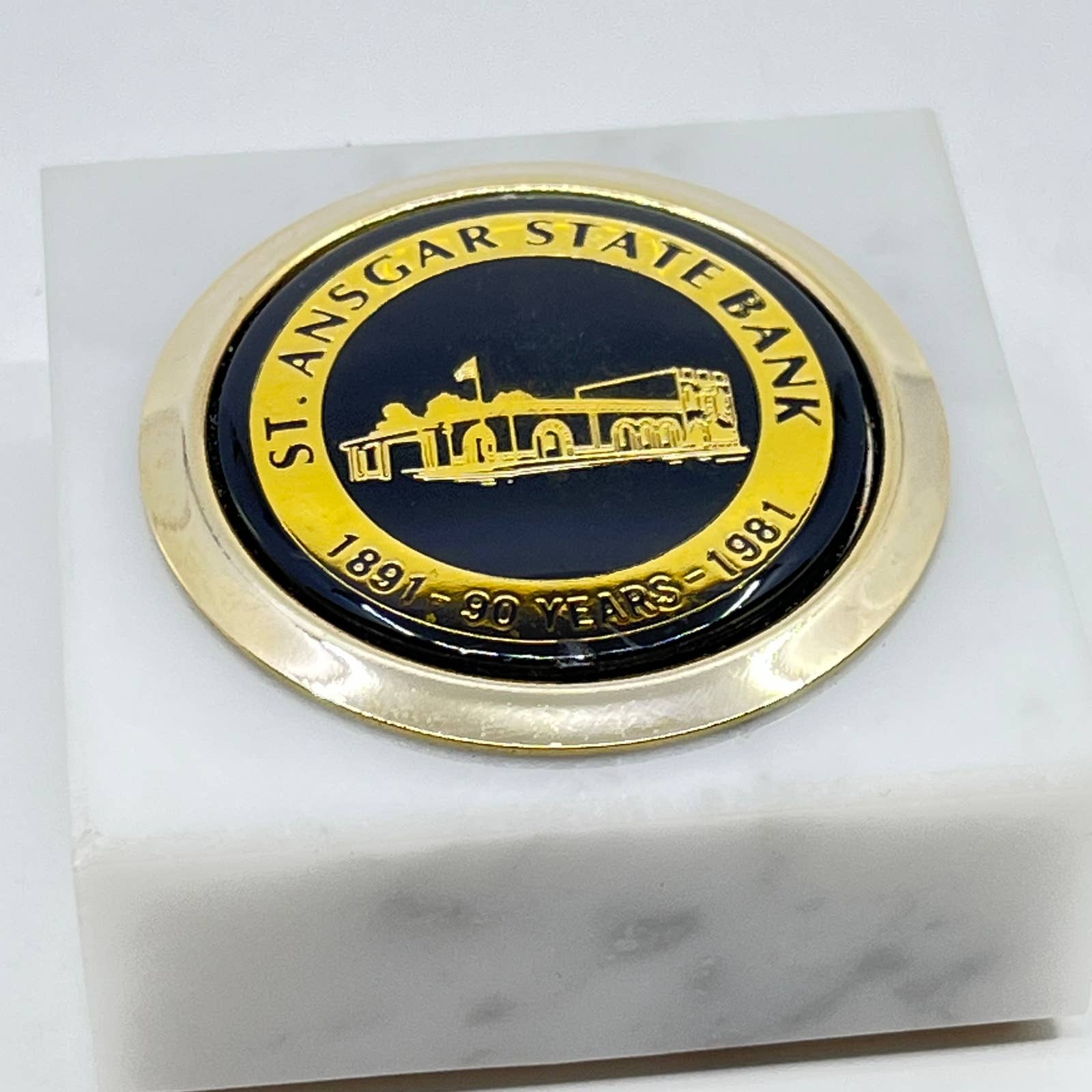 1981 St. Ansgar State Bank Iowa 90th Anniversary Marble Paperweight SD3
