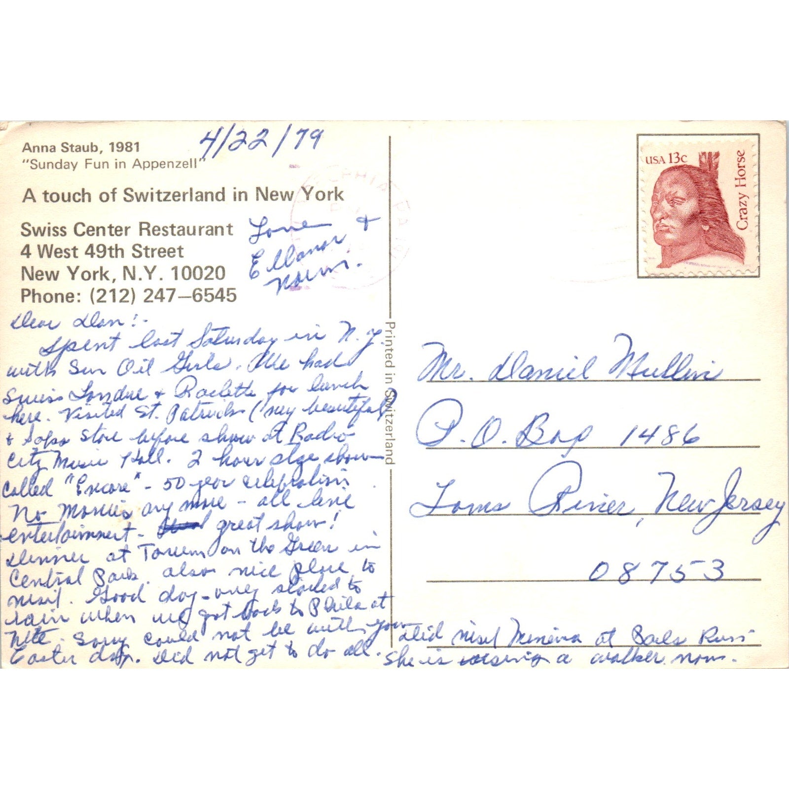1981 Sunday Fun in Appenzell Anna Staub Switzerland in NY Vintage Postcard PD8
