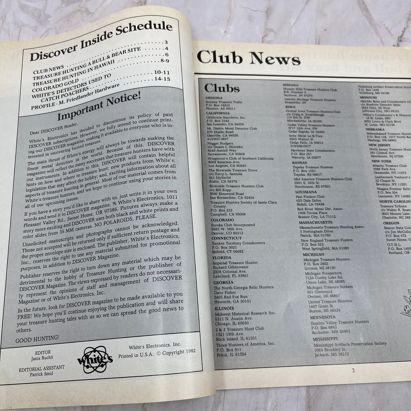 1982 - Discover Treasure Hunting Magazine - White's Electronics Inc M11