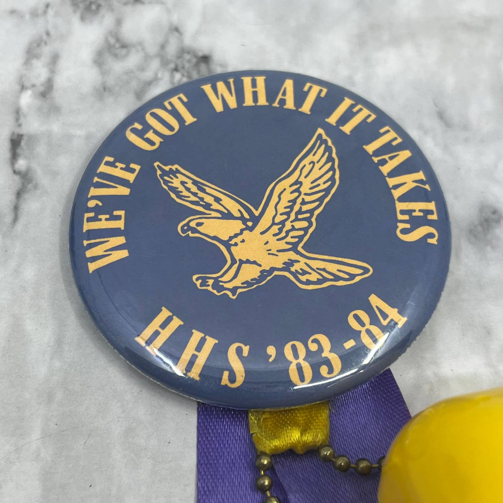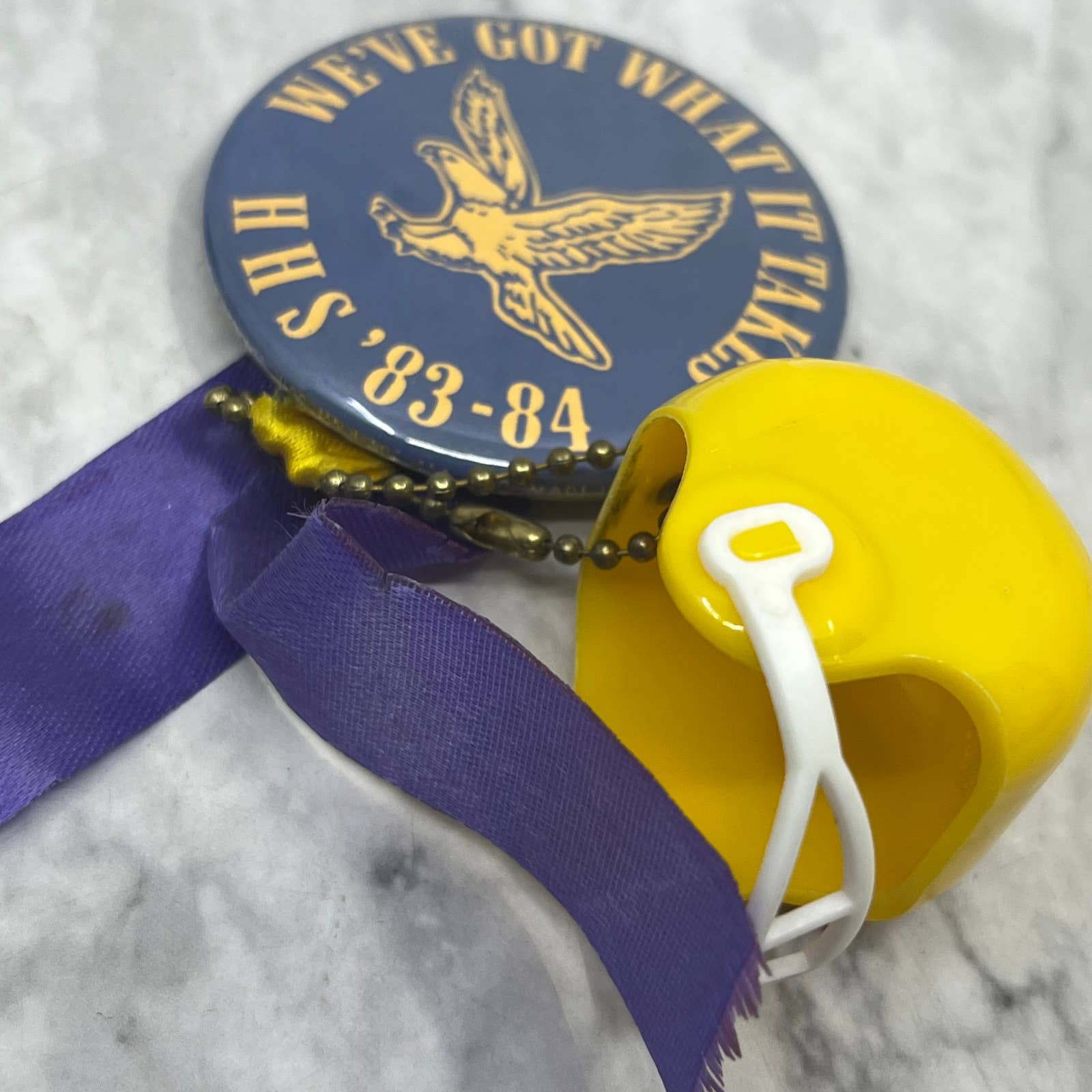 1983-84 Hermantown Hawks Homecoming Pinback Button w/ Football Helmet Charm SF1