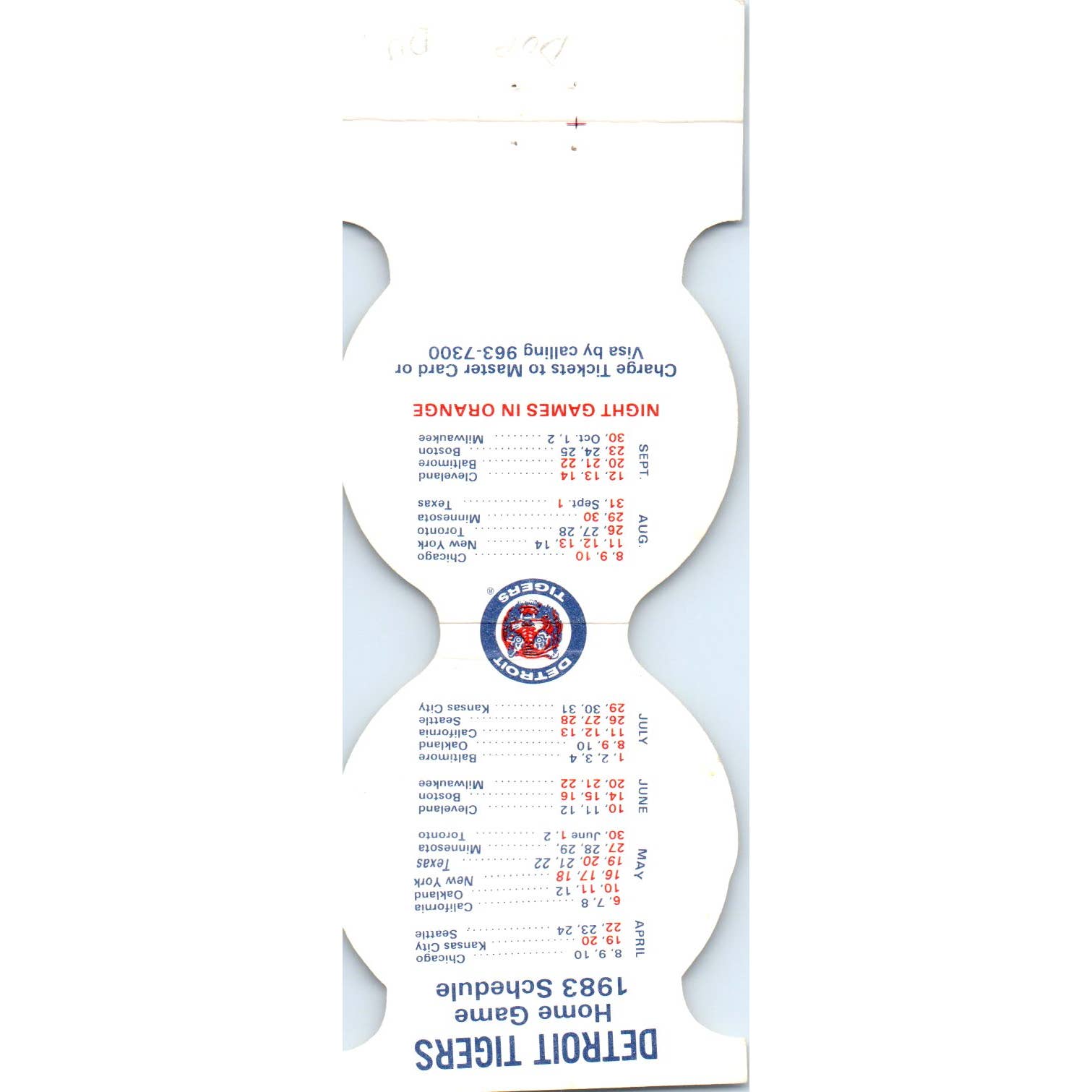 1983 Detroit Tigers Baseball MLB Schedule Matchbook Cover SA1-M4